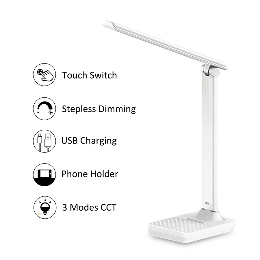Настольная Светодиодная лампа 5 в с USB, ночник для чтения, складной светильник с затемнением, энергосберегающий, с защитой глаз, для учебы и работы