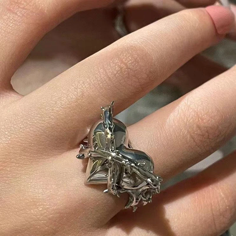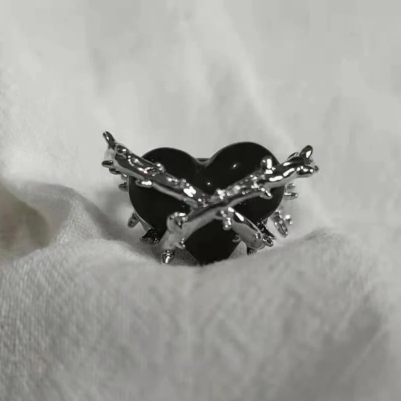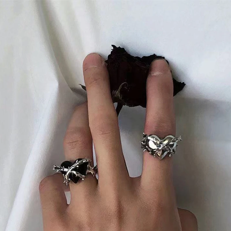 Модные креативные панк готические шипы любовное сердце кольца для женщин корейские Шипы Розовый Цветок Открытое кольцо на палец ювелирные изделия для вечеринки на Хэллоуин
