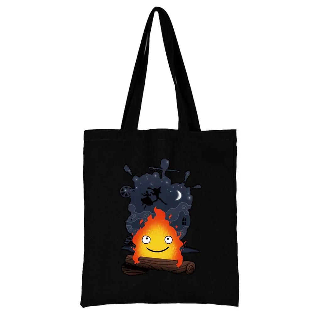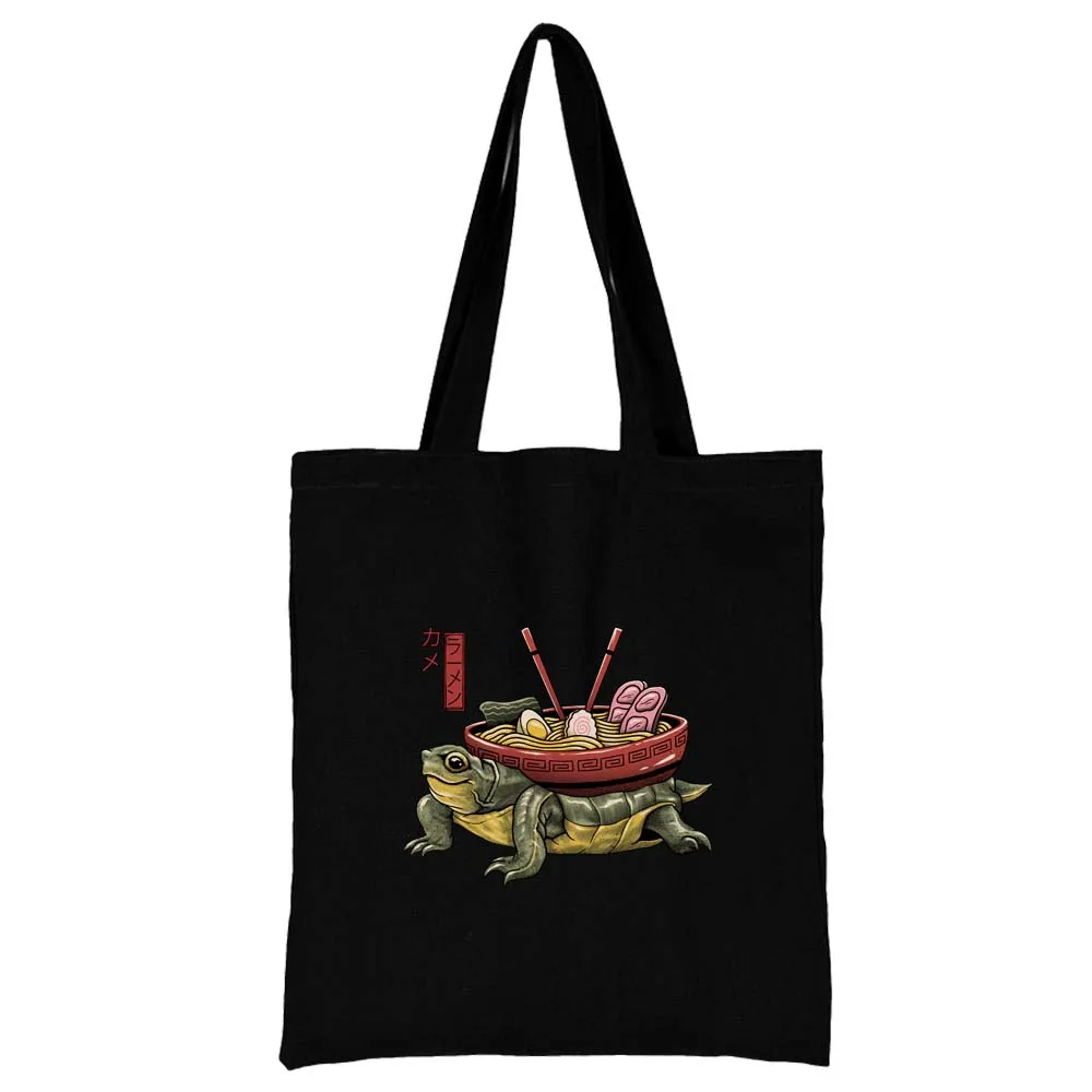 Новая женская черная сумка для покупок, Повседневная вместительная сумка через плечо, многоразовая Холщовая Сумка с японским рисунком для студентов колледжа
