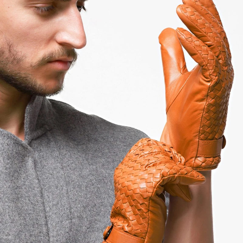 Мужские кожаные перчатки, перчатки из натуральной кожи, модные зимн...