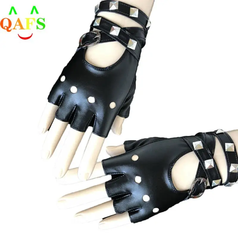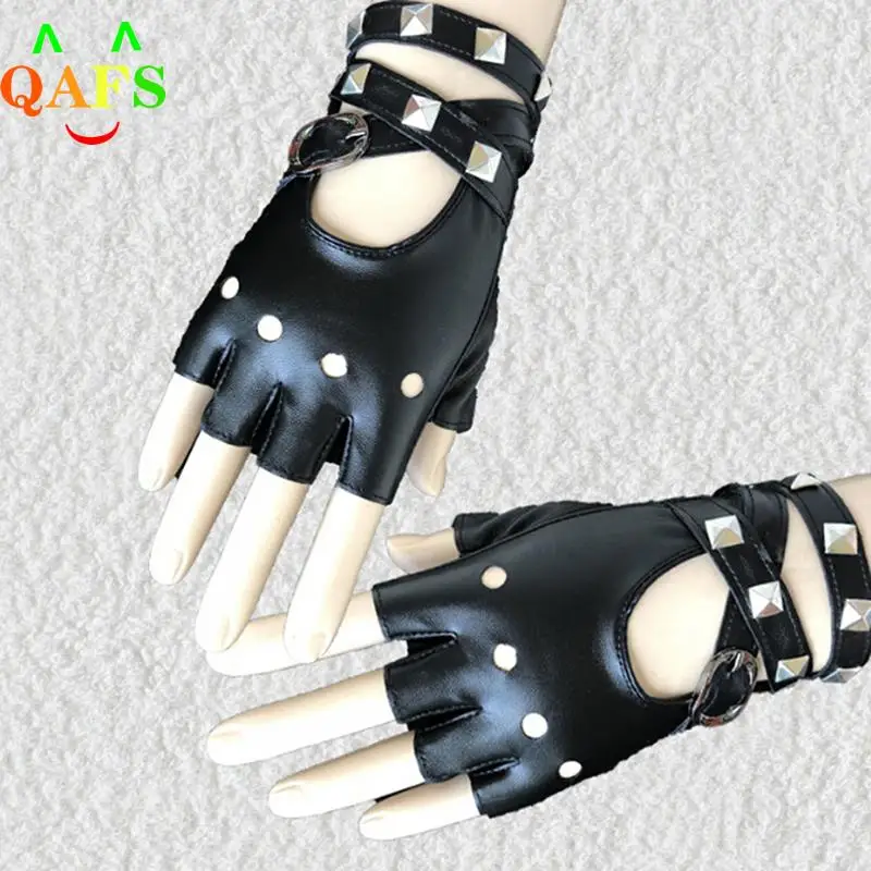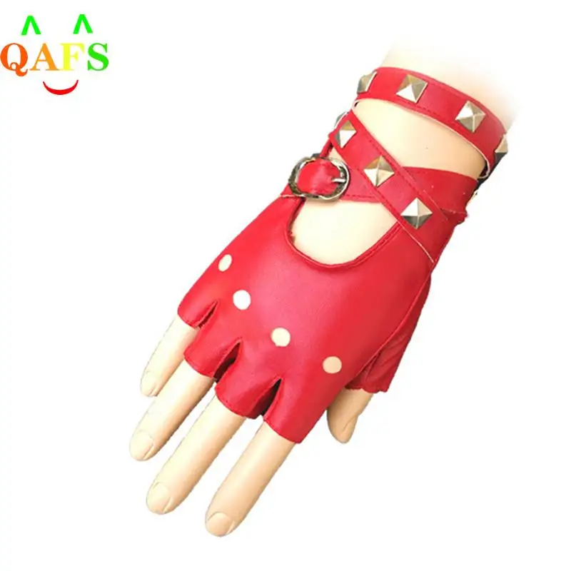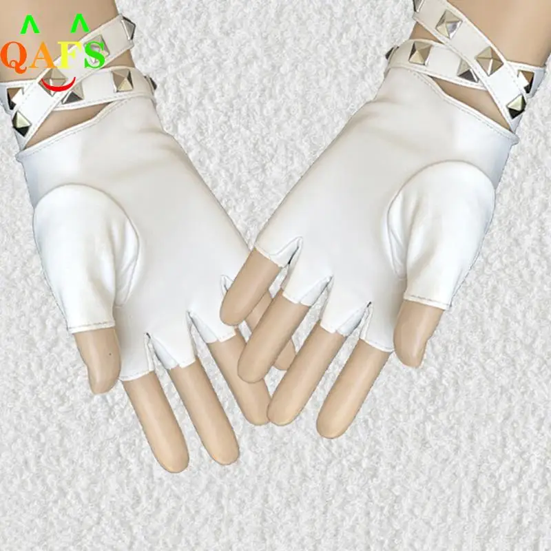 Перчатки для вождения без пальцев унисекс, стильные сексуальные перчатки с заклепками для дискотеки, танцев, рок-н-ролла, черные, красные, белые, в стиле панк