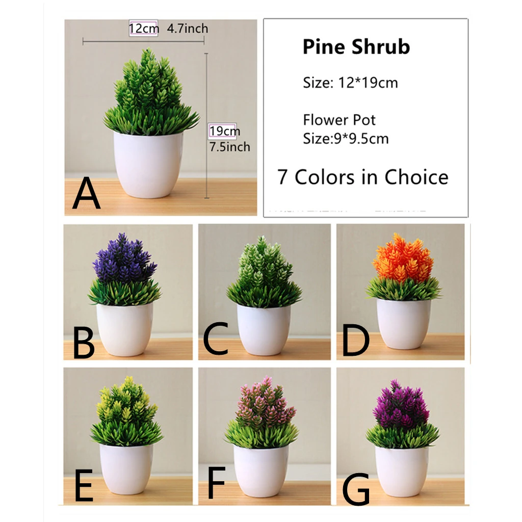 Размер: цветок кустарник: 14*15 см, сосновый кустарник: 14*19 см, пожалуйста, учитывайте погрешность в 1-3 см из-за ручного измерения. Подходящий размер делает поддельные зеленые растения более легкими для украшения вашей комнаты.
