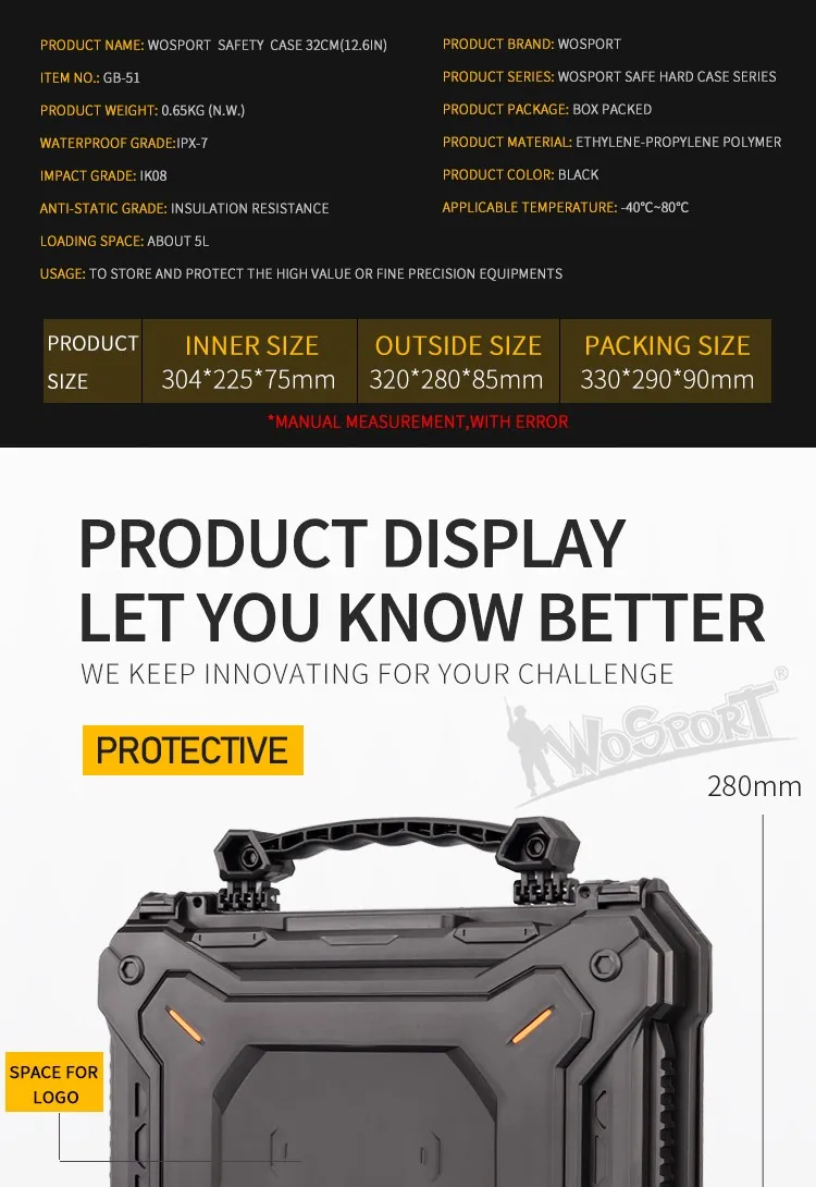 Материал: этиленпропиленовый полимер Цвет: черный Вес: 0,75 кг Загрузочное пространство: около 5л Размер: Внутренний размер: 304*225*75 мм/Внешний размер: 320*280*85 см Использование: для хранения и защиты высококлассного или точного оборудования.