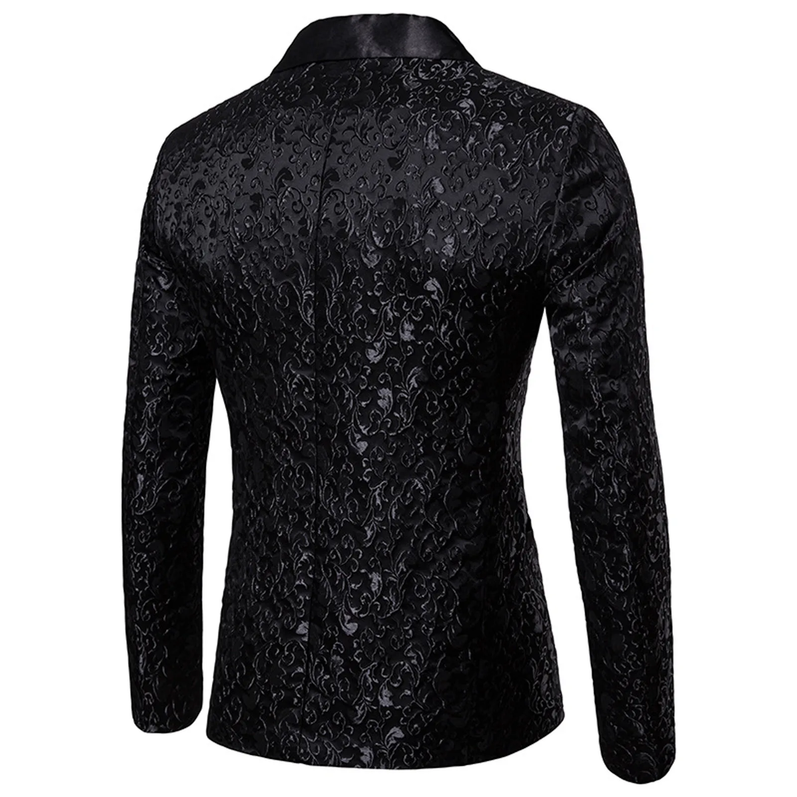 Мужской повседневный деловой костюм, свадебный пиджак с длинным рукавом и цветочным принтом, блейзер на одной пуговице, стильный мужской пиджак