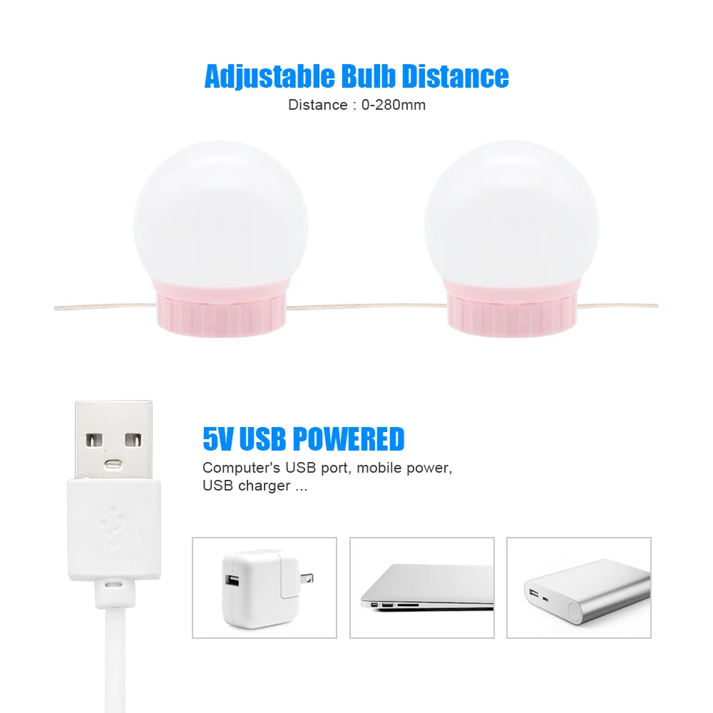 Гладкая поверхность лампы обеспечивает более мягкий белый светильник.Отличные яркие светодиоды SMD2835, которые гарантируют хорошее освещение, мерцающий и антибликовый светильник без стробов и излучения, он может держать ваши глаза подальше от усталости.Он питается от зарядного устройства USB, внешнего аккумулятора USB или ноутбука, поэтому он удобен, когда вы хотите его использовать.Он оснащен функцией памяти, записывает последний режим освещения, когда вы используете его, и это тот же режим освещения, когда вы используете его снова.5 уровней регулируемой яркости, нажав на переключатель, удовлетворяя ваши различные потребности при различных обстоятельствах.Растягивающаяся веревка, вы можете выбрать необходимую длину для DIY зеркальной формы.Крепкие липкие ленты для фиксации ламп, без повреждений вашей мебели.Вы можете спроектировать лампу в свою любимую форму с помощью клейких лент для удовлетворения различных форм зеркала.Простота установки, просто подключите и наслаждайтесь.Широко используется в гардеробных, салонах, парикмахерских и т. Д.