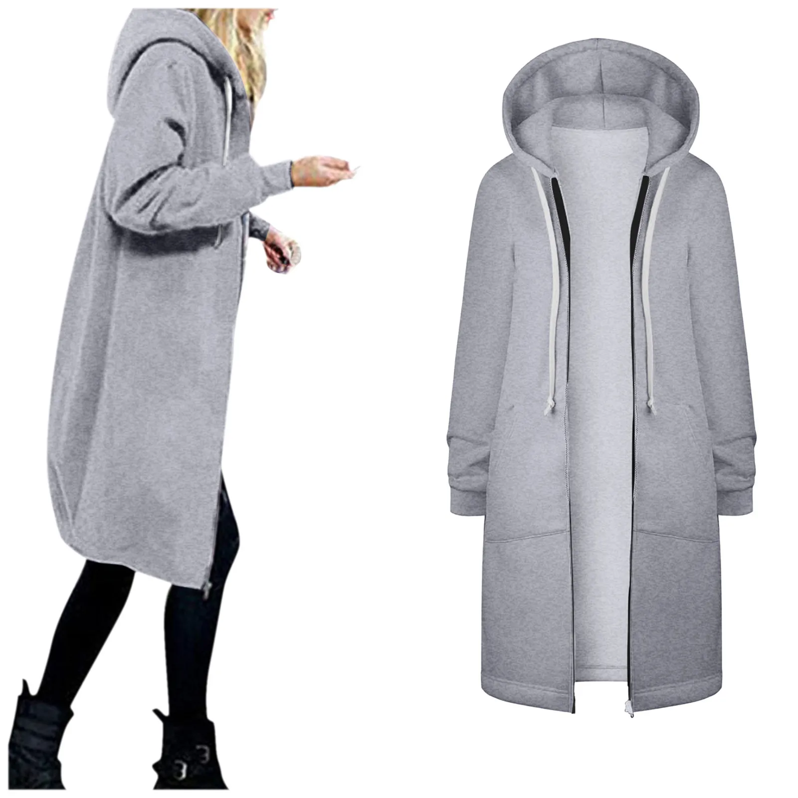 Толстовки женские теплые толстовки на молнии длинное пальто куртка ...