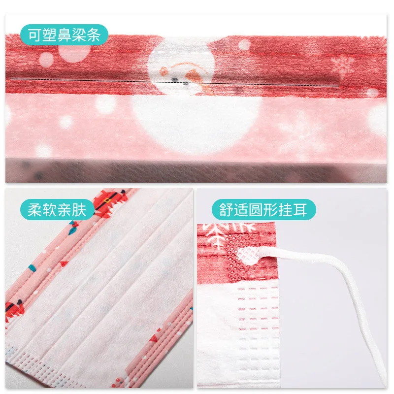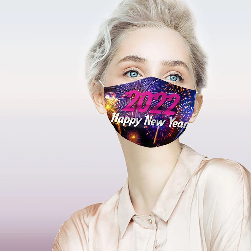Одноразовая маска для лица для взрослых 2022 с новым годом маски для рта с рисунком 3-слойные защитные рождественские маски дышащие технические