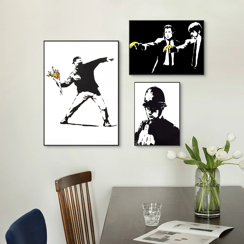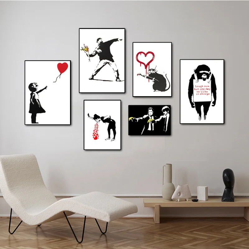 Черно-белая Абстрактная Картина граффити Бэнкси, художественный плакат, девушка с красным воздушным шаром, Настенная картина для Нордического домашнего декора, художественное оформление