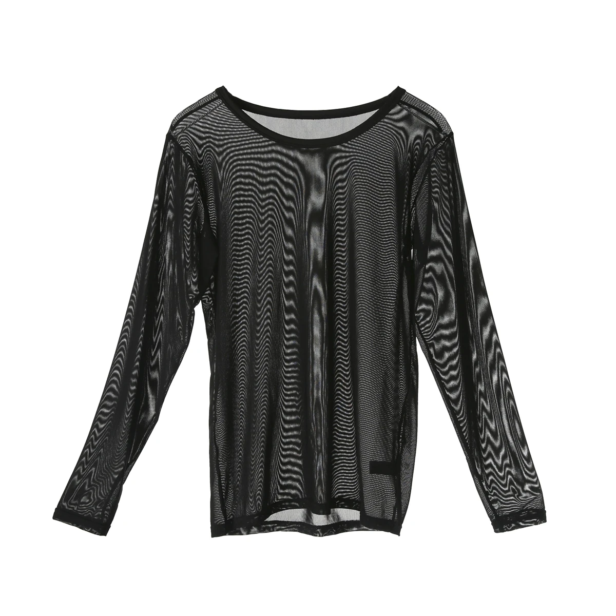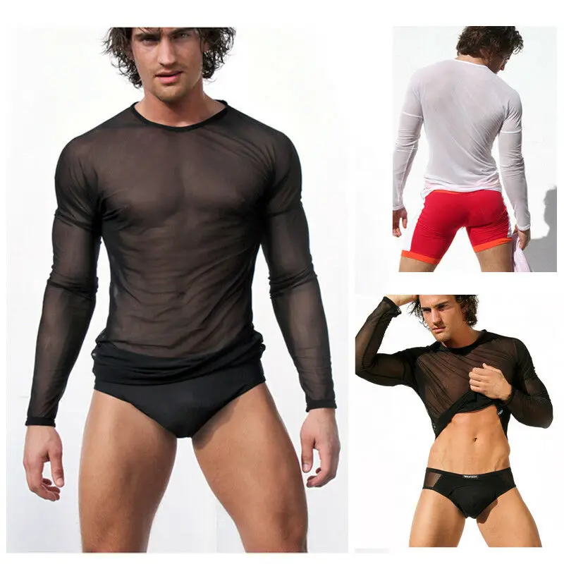 Мужская прозрачная рубашка H JACKY, нижнее белье, майка, одежда для геев, нейлоновая сетчатая рубашка, Прозрачная Футболка с длинными рукавами
