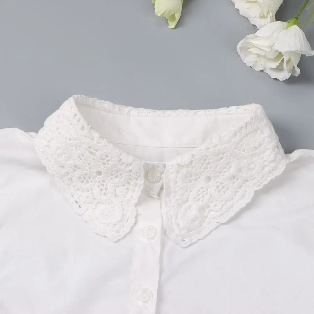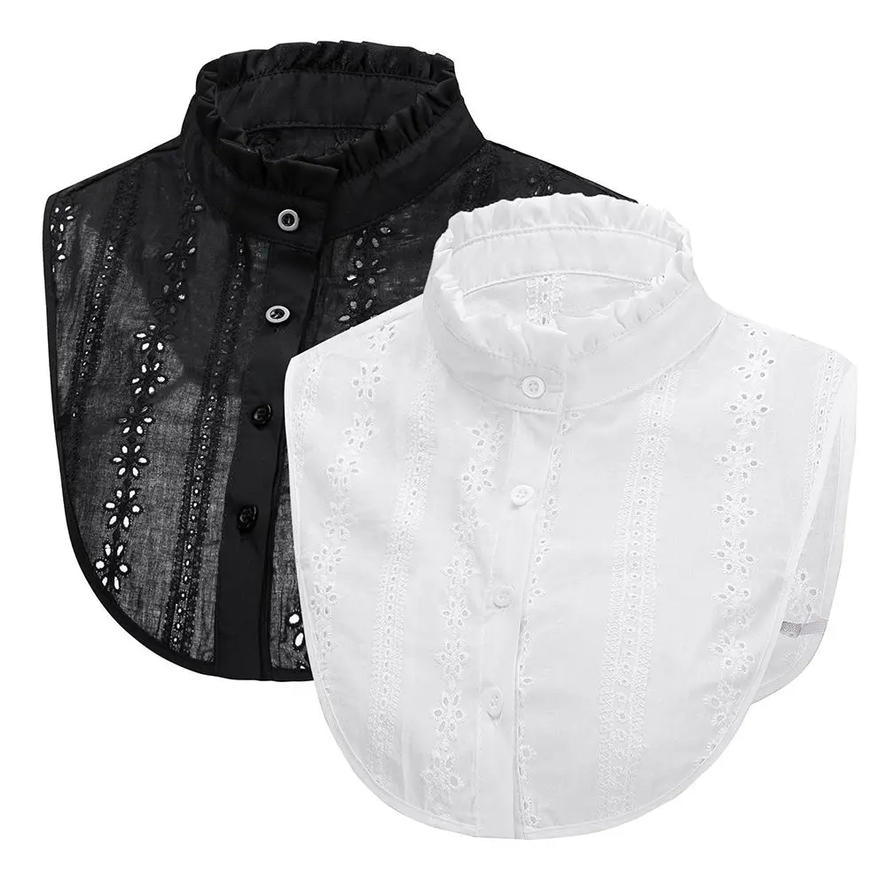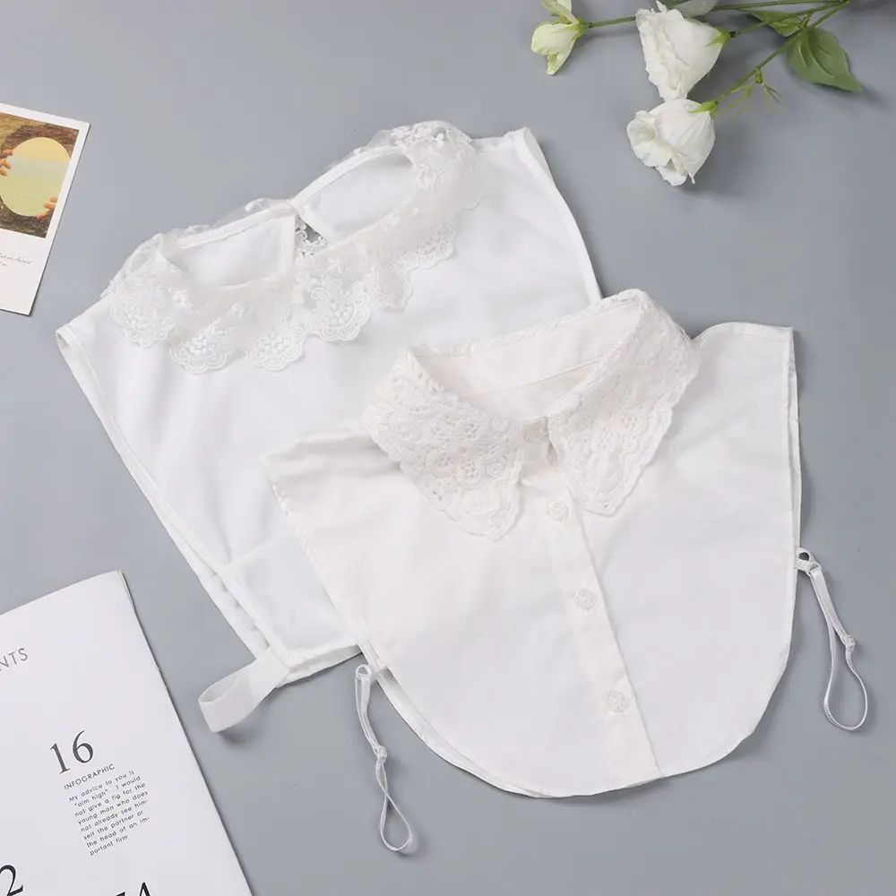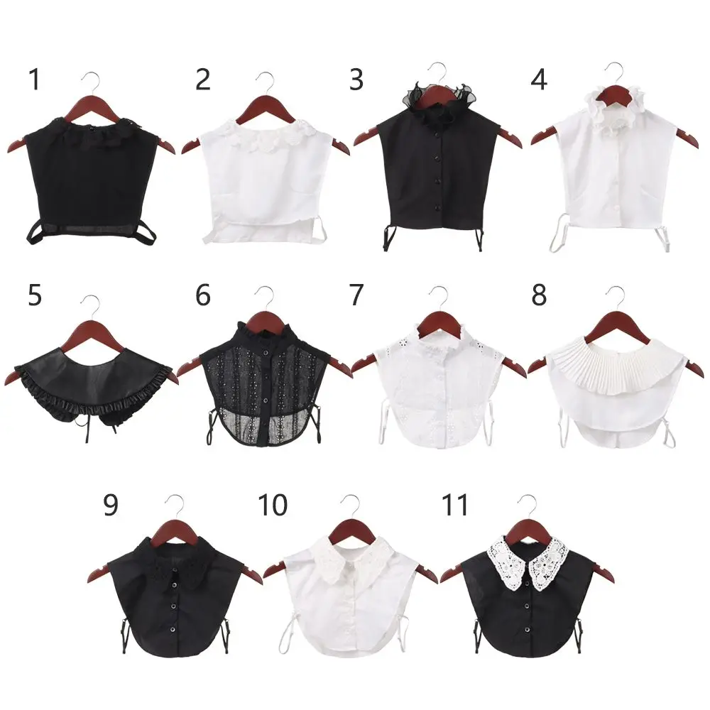 Белый накладной воротник с завязкой спереди, воротник-стойка со съемными бусинами, Женский винтажный воротник, накладная кружевная Дамская накладная блузка, воротник, полурубашка