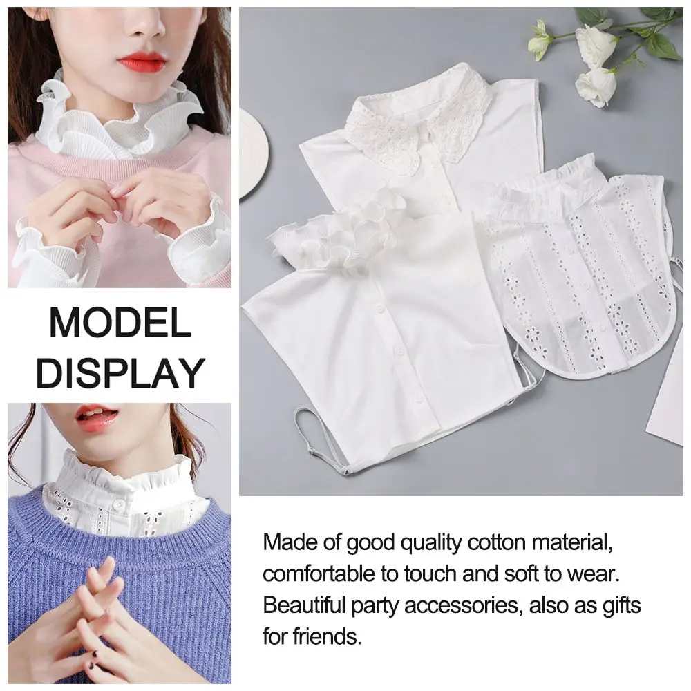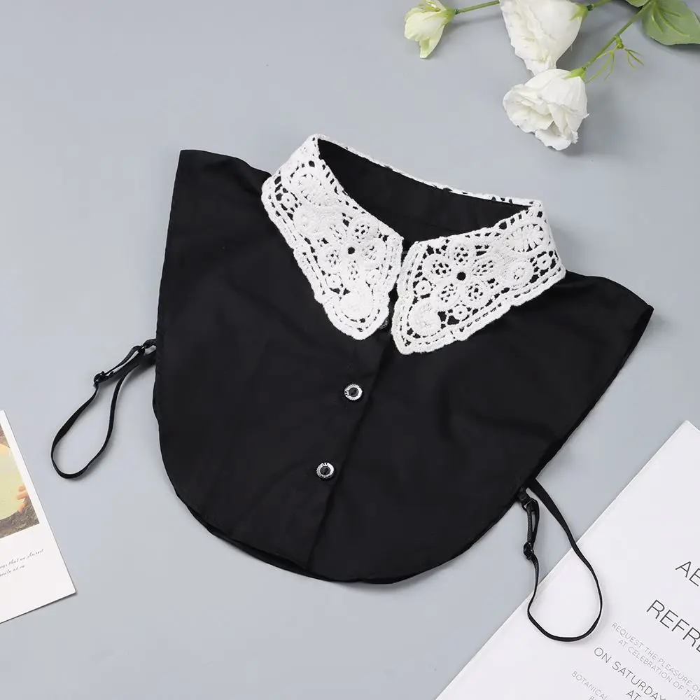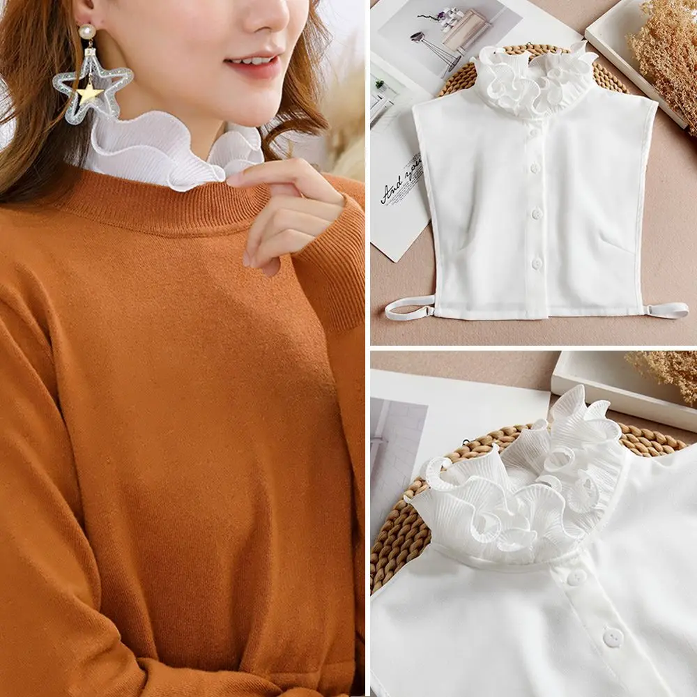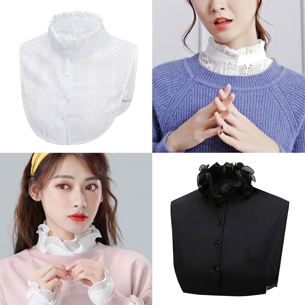 Белый накладной воротник с завязкой спереди, воротник-стойка со съемными бусинами, Женский винтажный воротник, накладная кружевная Дамская накладная блузка, воротник, полурубашка