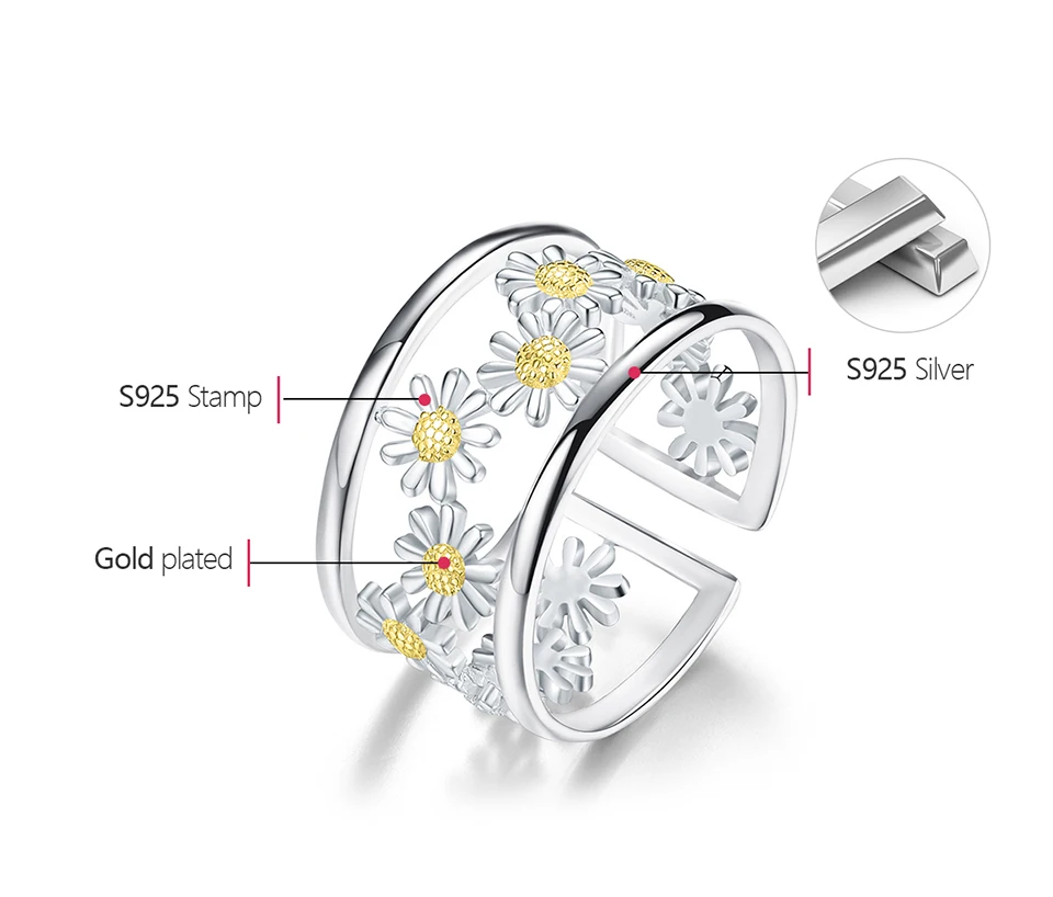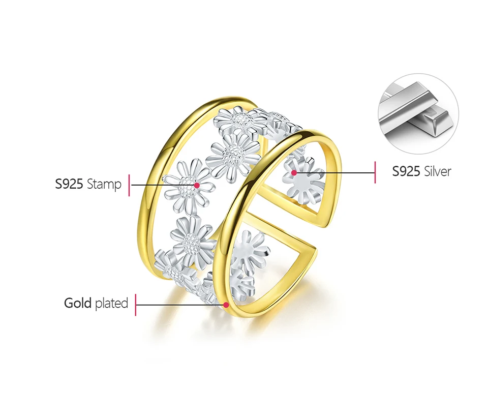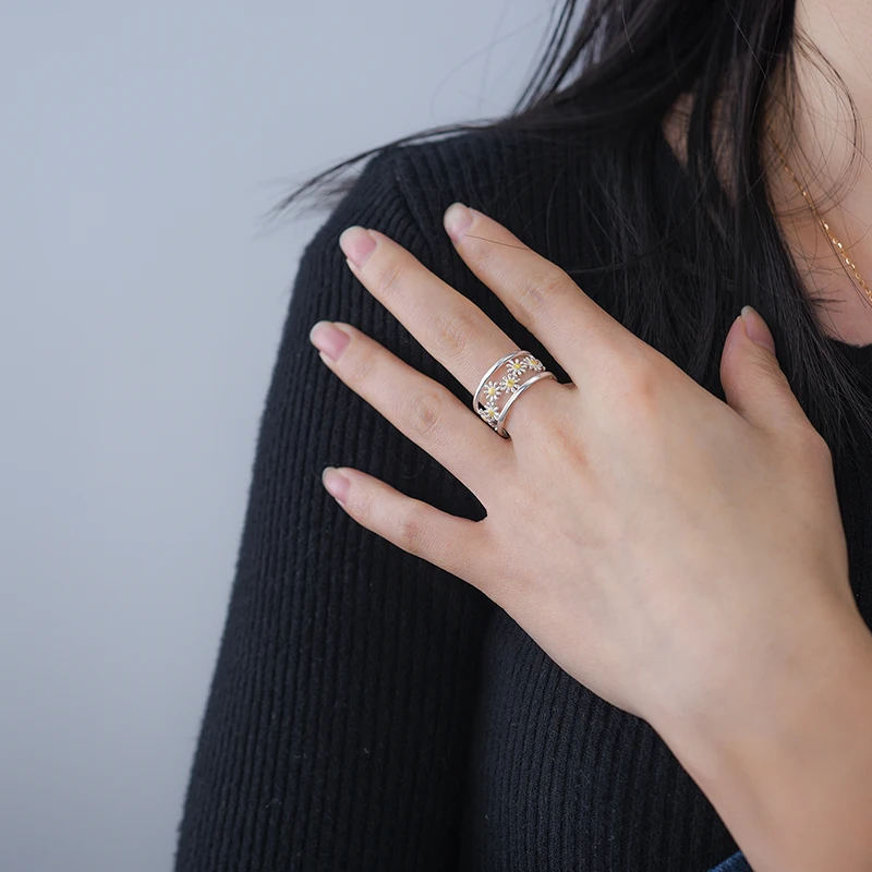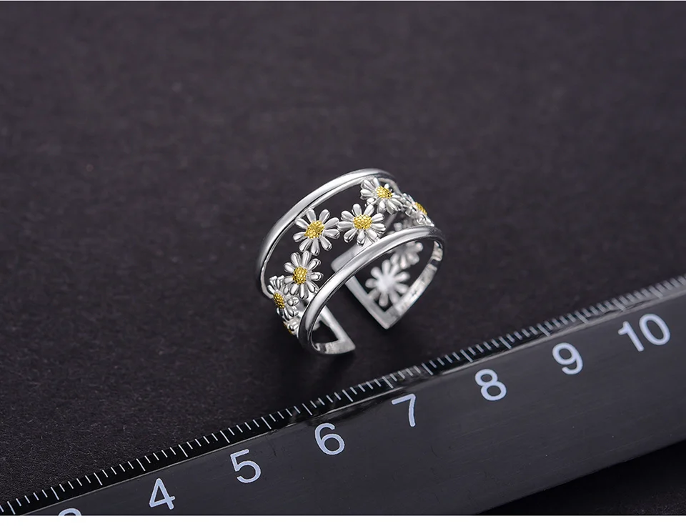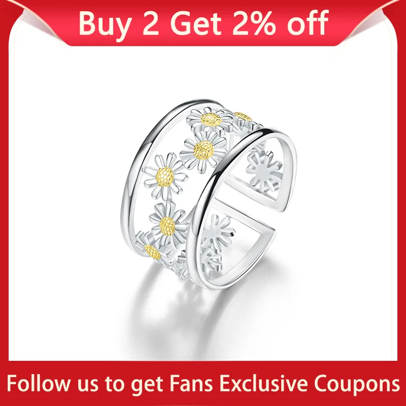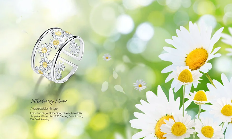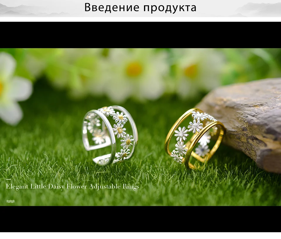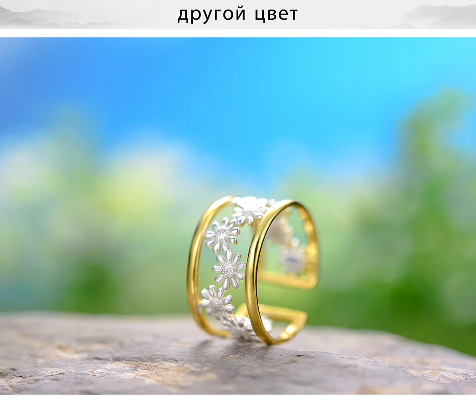Женское регулируемое кольцо Lotus Fun, элегантное кольцо из серебра 925 пробы с маленькой маргариткой, ювелирное изделие из 18-каратного золота, 2022