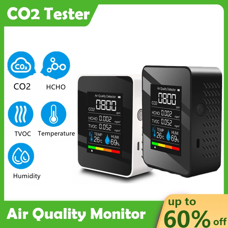 Детектор качества воздуха, тестер CO2, измеритель CO2 с датчиком углекислого диоксида углерода, TVOC, HCHO, качество электричества, температура, влажность