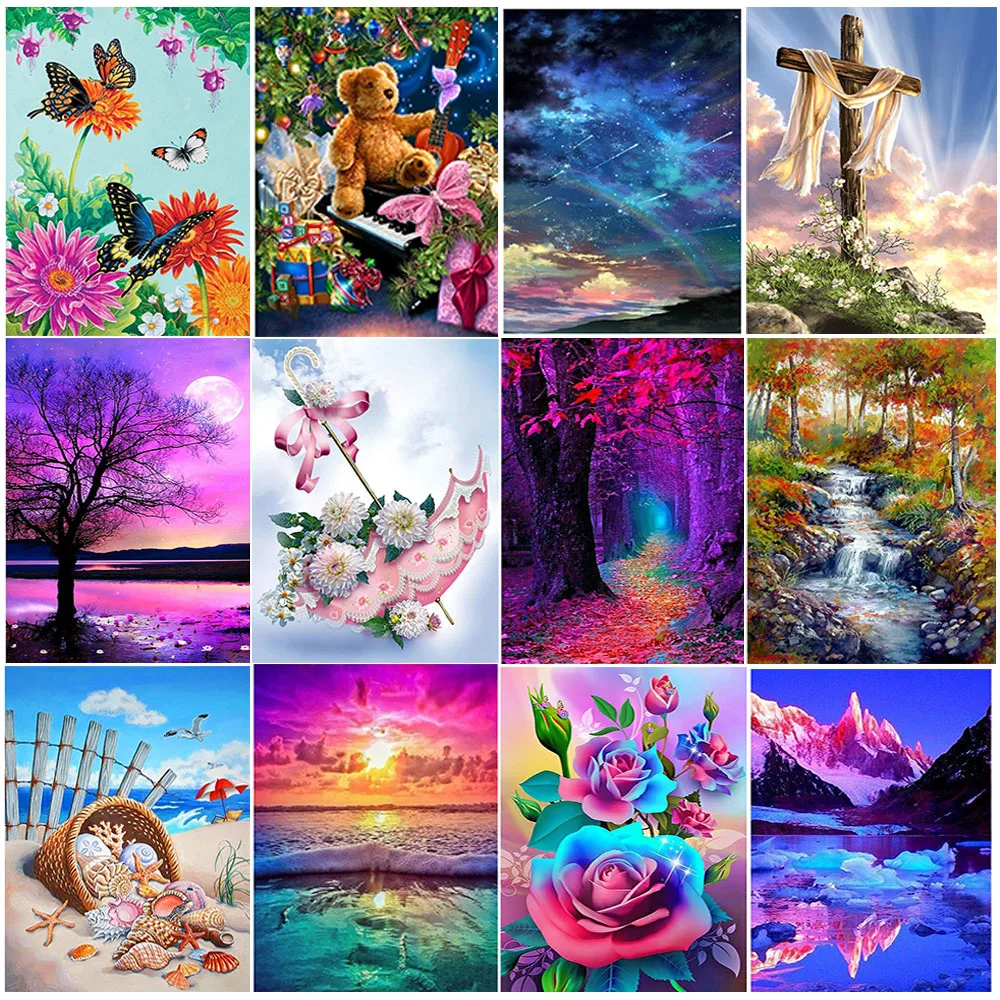Алмазная живопись своими руками, животные, пейзаж 5D, искусственная...