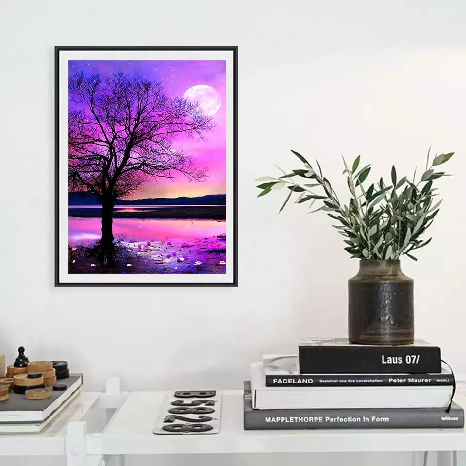Полноразмерная Алмазная 5d-картина с Луной, пейзаж, мозаика, вышивк...