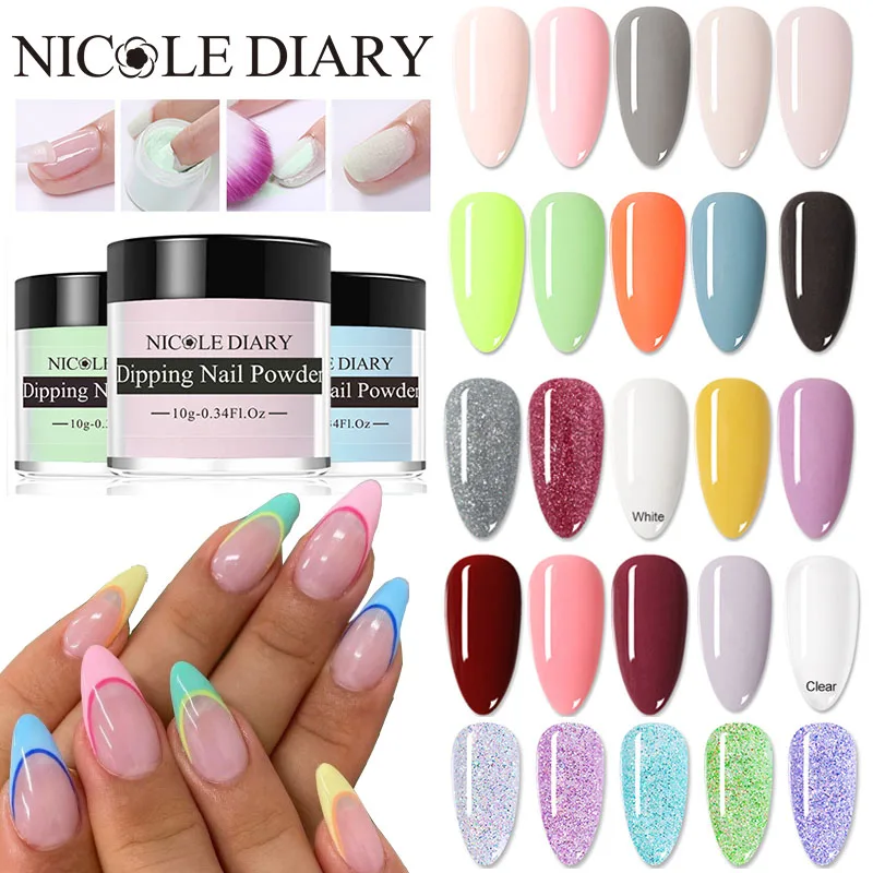Цветной порошок NICOLE DIARY для ногтей, натуральная Сухая Пудра без лампы, сушка, художественное украшение, полимерный пигмент, сделай сам, гель-блеск для французского погружения