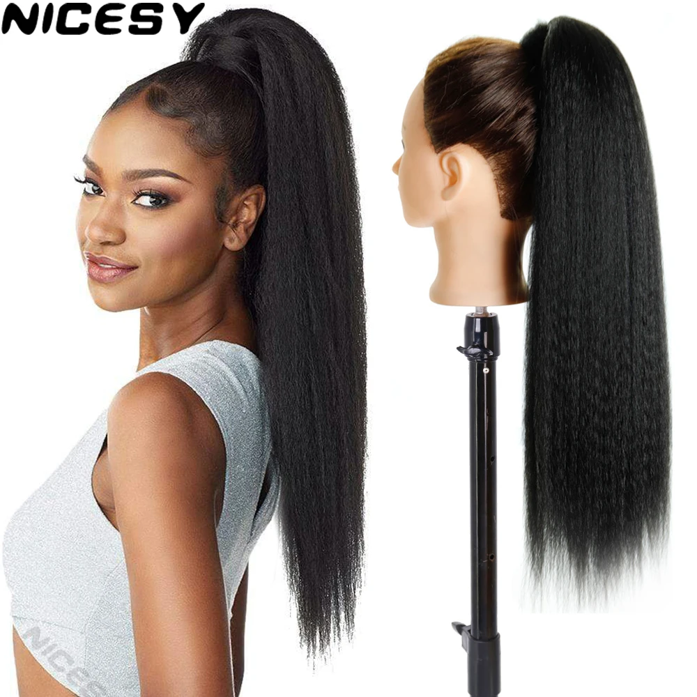 Длинные афро пышные прямые конский хвост волосы кудрявые натуральные волосы 24 дюйма синтетический шнурок конские хвосты для женщин
