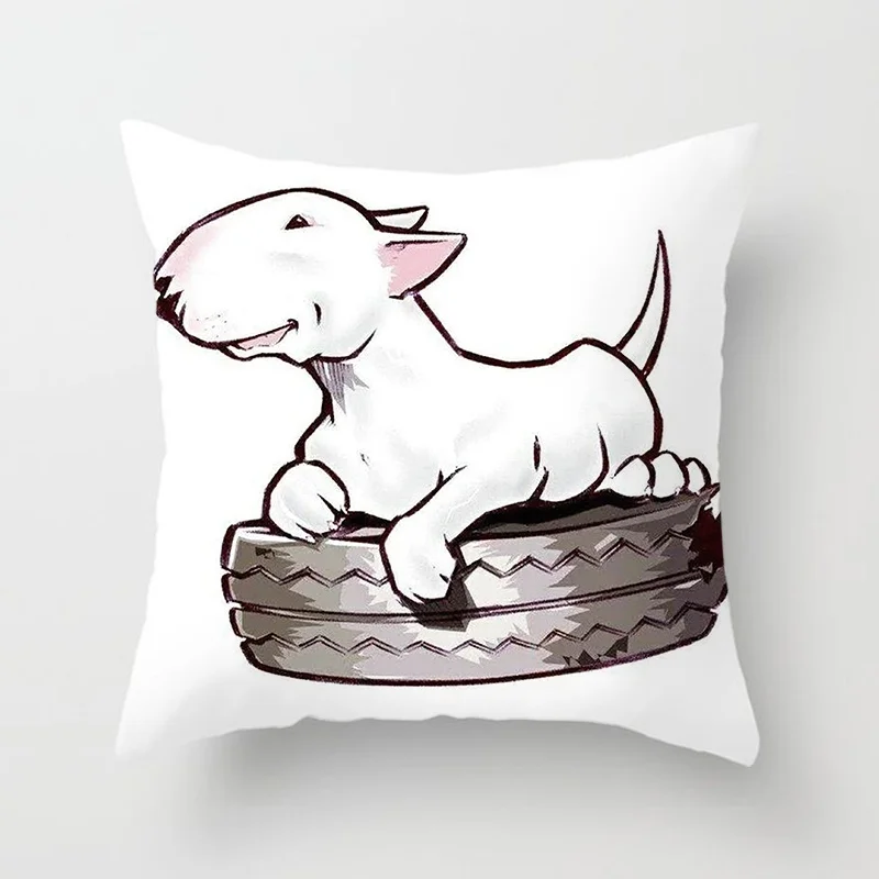 Мультяшная подушка в виде Бультерьера, подарок, украшение для дома и офиса, подушка для спальни, дивана, Автомобильная подушка, чехол для подушки