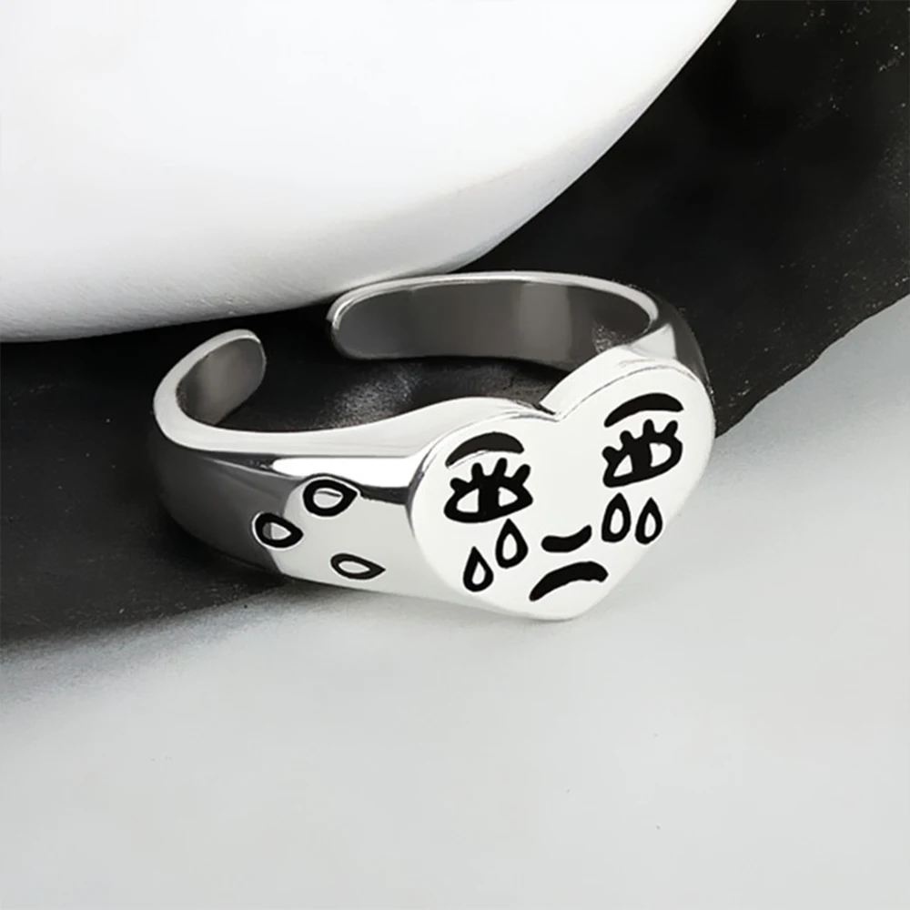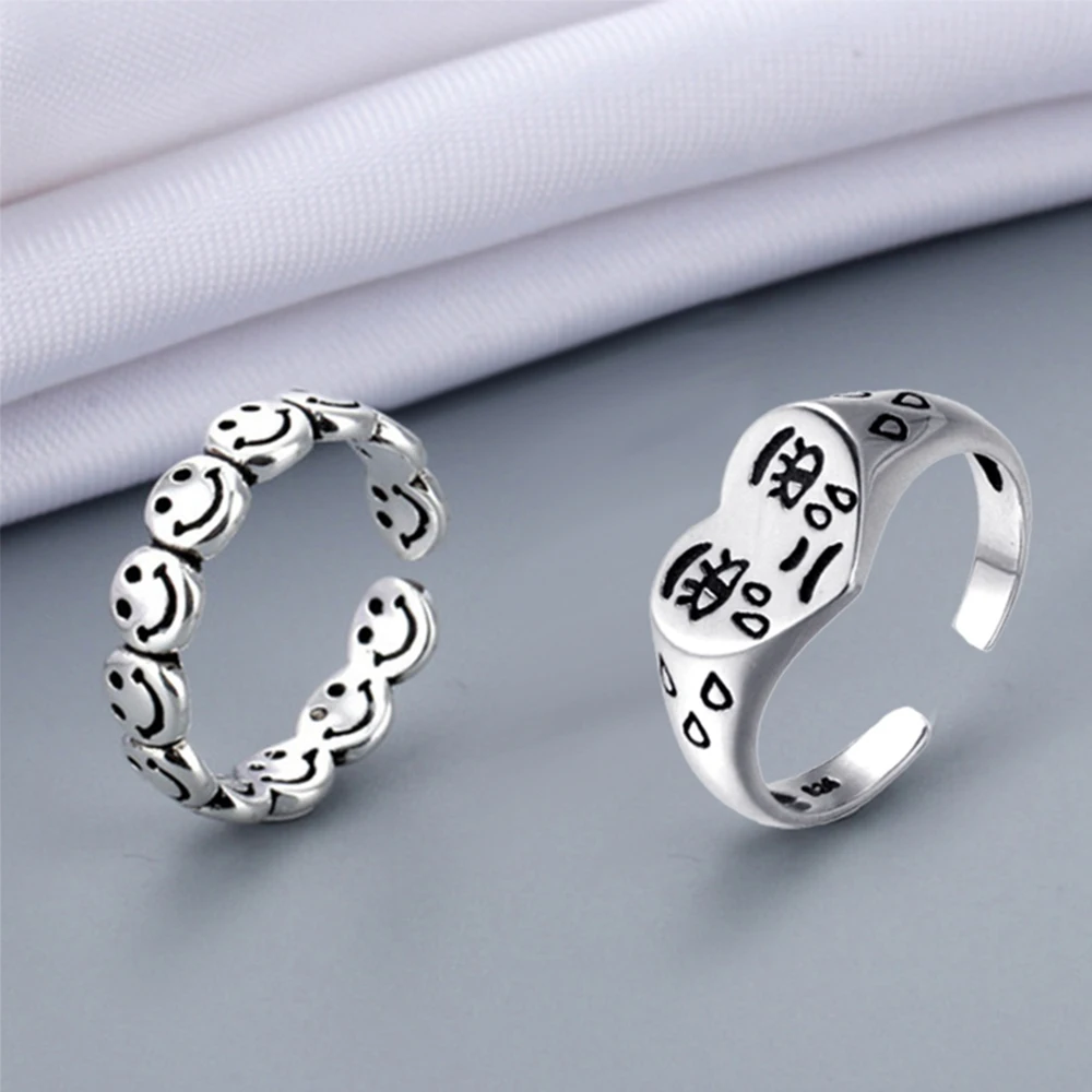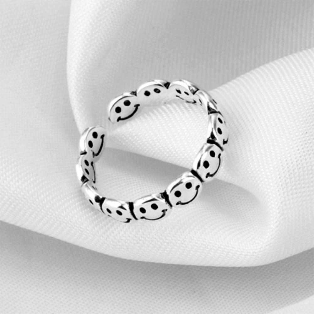 Винтажные серебряные кольца с счастливым улыбающимся лицом для женщин и мужчин, регулируемое кольцо в стиле панк, хип-хоп, модные лучшие подарки, ювелирные изделия