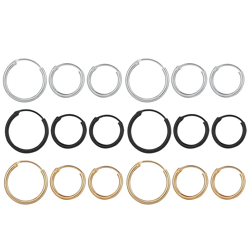 Простые круглые маленькие серьги-кольца в стиле панк, 3 размера, дл...