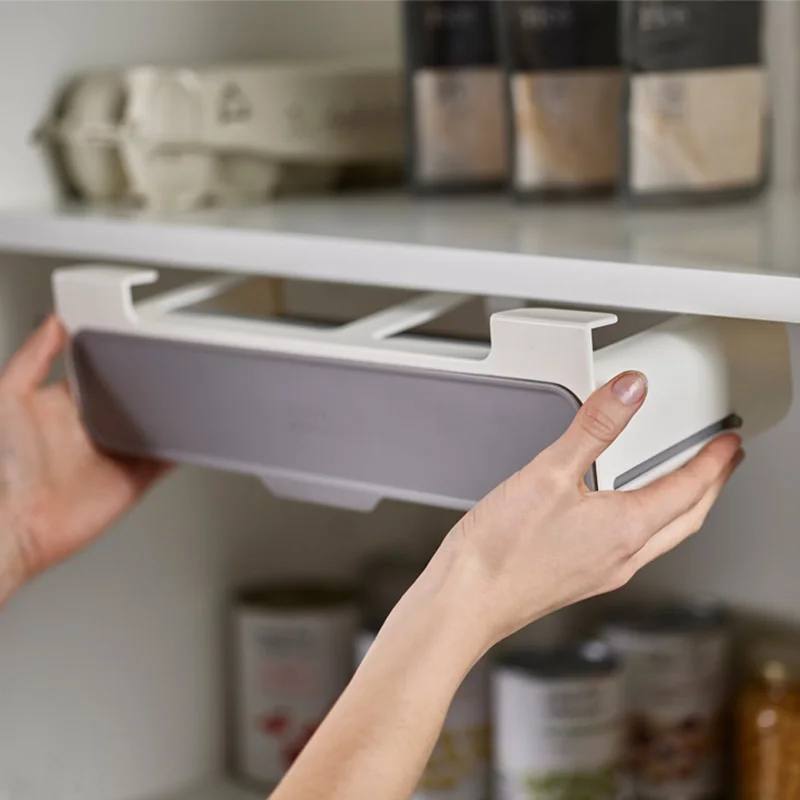 Легко установить с помощью стойким 3м VHB клейкая лента, блок хорошо вписывается на ваш существующий полке. Подходит для кухонных блоков шириной более 32 см (12 ⅝ дюймов).