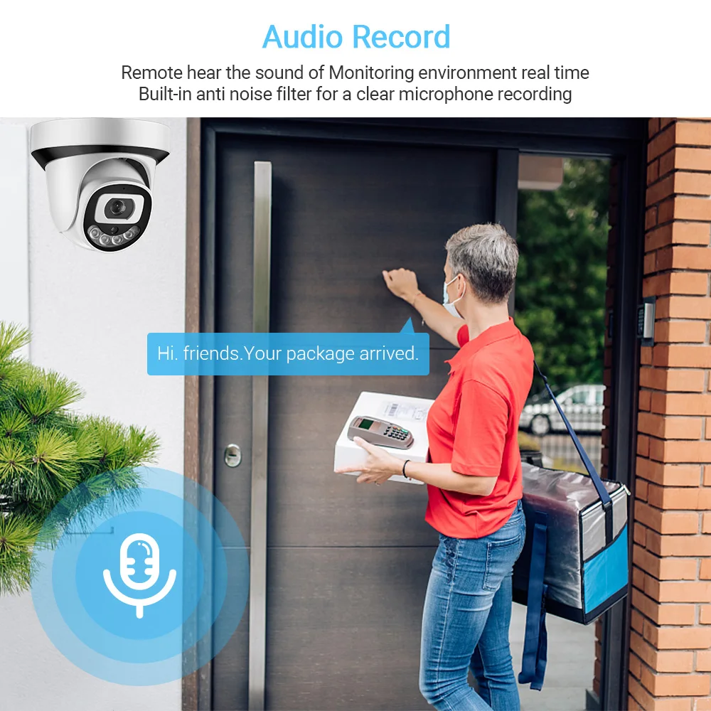 Эта купольная камера с внутренним микрофоном может поддерживать аудиозапись с видеозаписью
