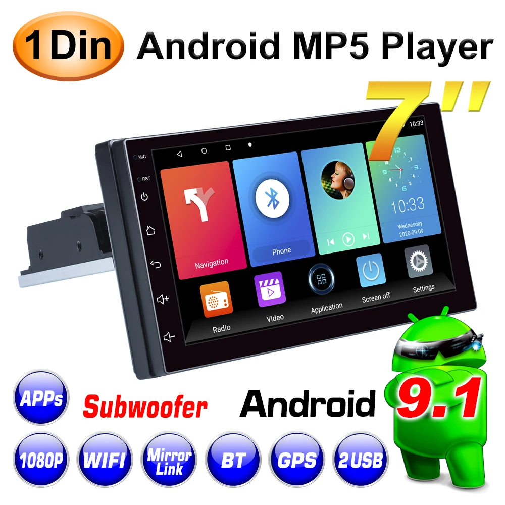 1 DIN Android 9,1 автомобильный мультимедийный плеер, регулируемый ...