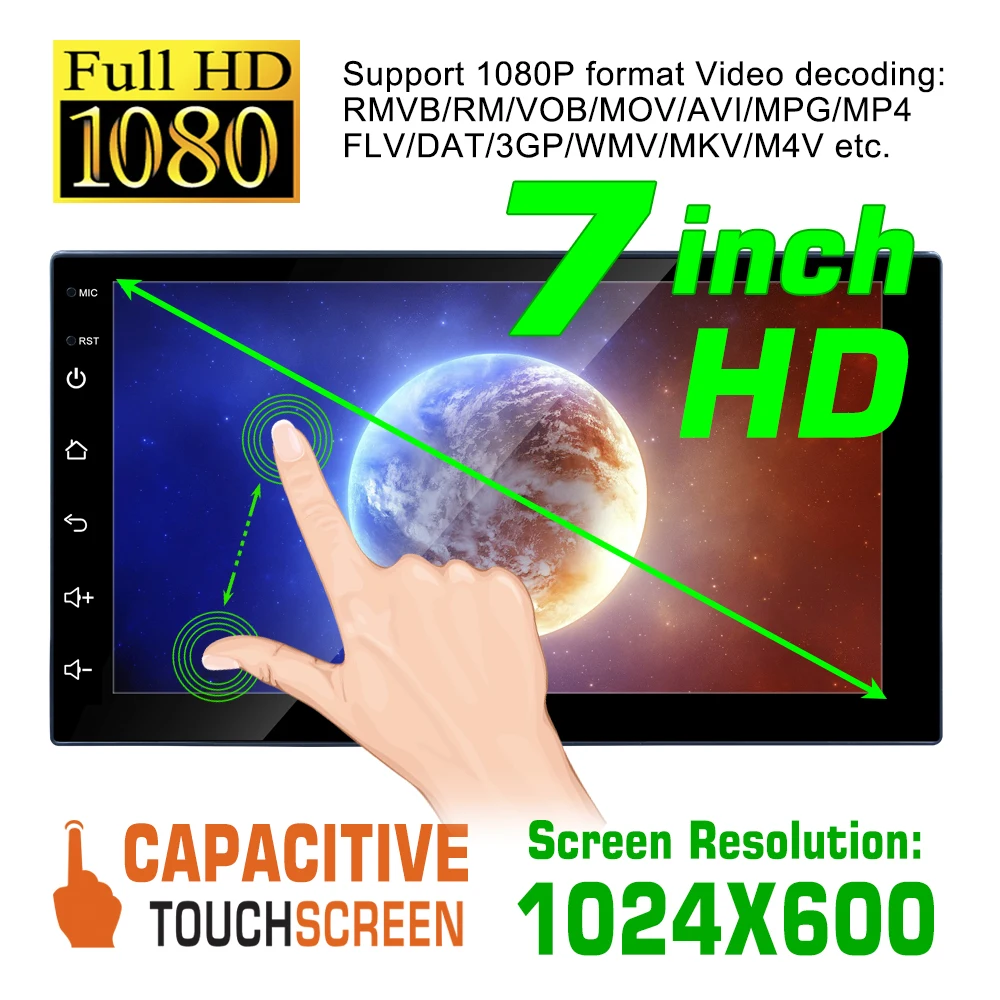 Автомагнитола 1Din с сенсорным экраном 7 дюймов, Bluetooth, Wi-FiGPS2USB