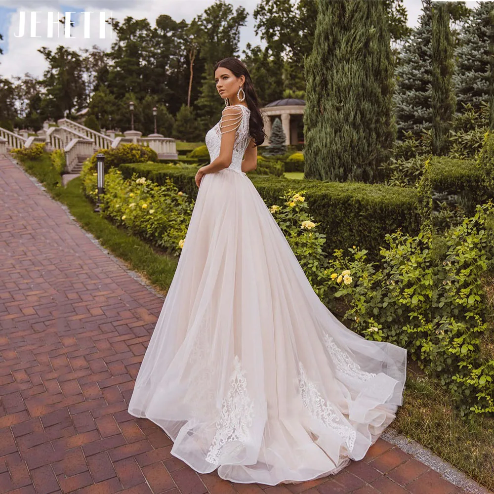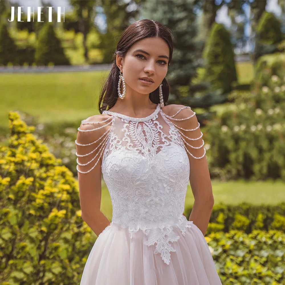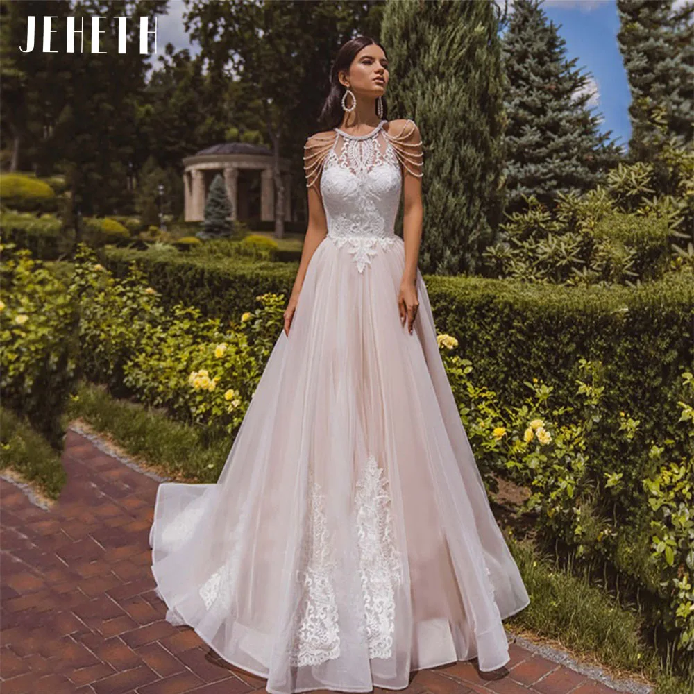 Кружевное Тюлевое свадебное платье JEHETH с лямкой на шее, очаровательное ТРАПЕЦИЕВИДНОЕ изысканное платье принцессы с бисером, свадебное платье, 2021