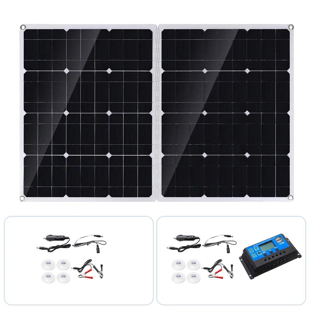 Посылка включает: Набор 1 (с контроллером 20A) ● 1 x солнечная панель● 1 контроллер 20A● 1 x Зажигалка● 1 пара зажимов● 1 Руководство пользователя● 4 присоски