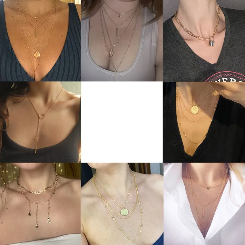 Женское многослойное ожерелье-цепочка из металлического сплава