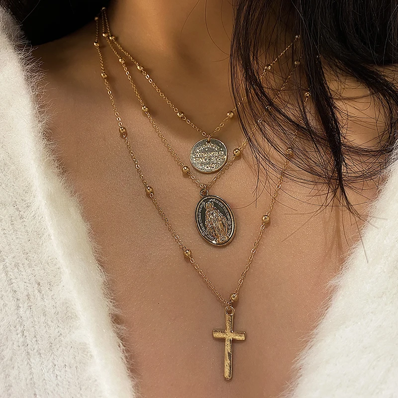 2021 цепи ожерелье Многослойные Луны сплава металлический диск золо...