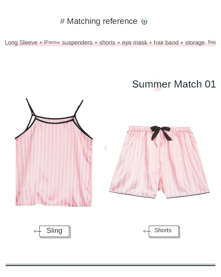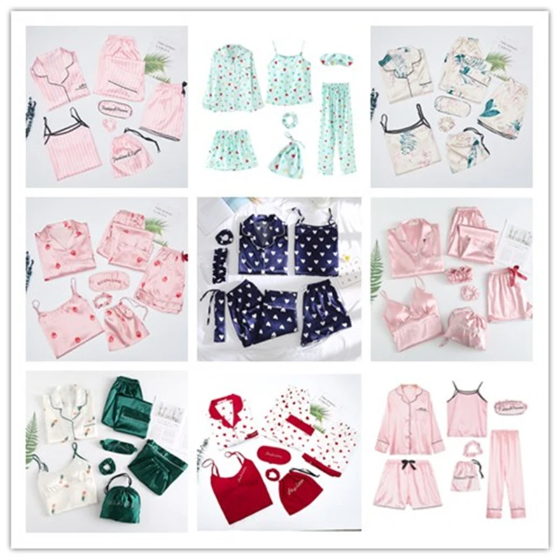 Пижамный комплект Женский атласный с длинным рукавом и шортами, 7 шт.