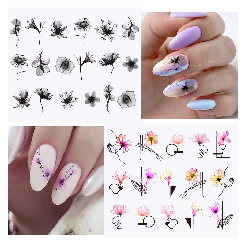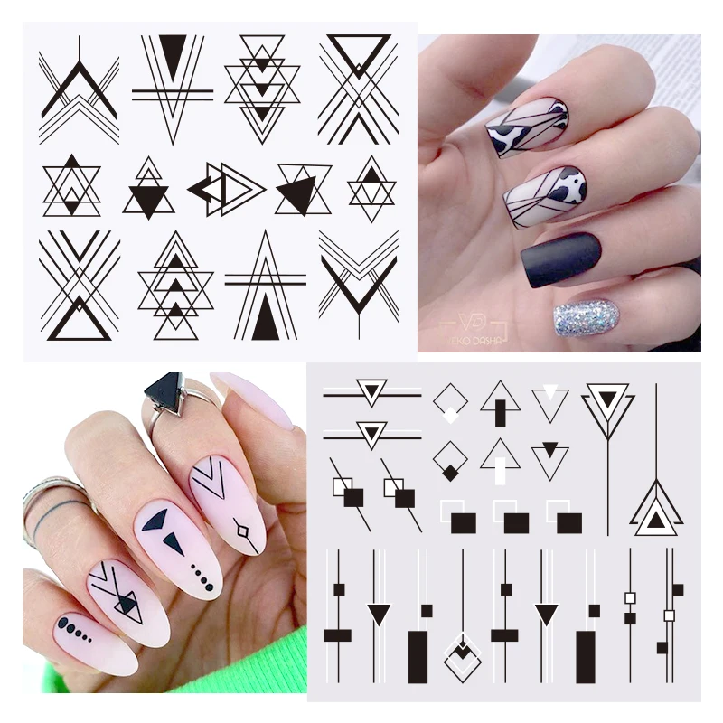 12 шт., водные наклейки для ногтей, с геометрическим дизайном