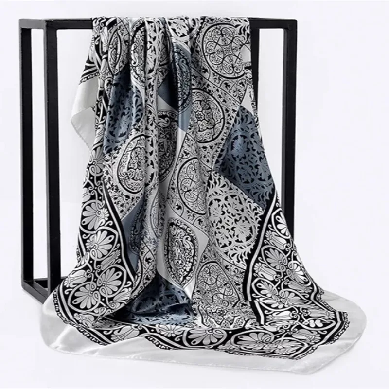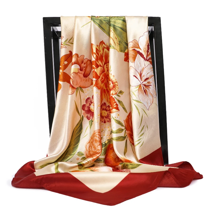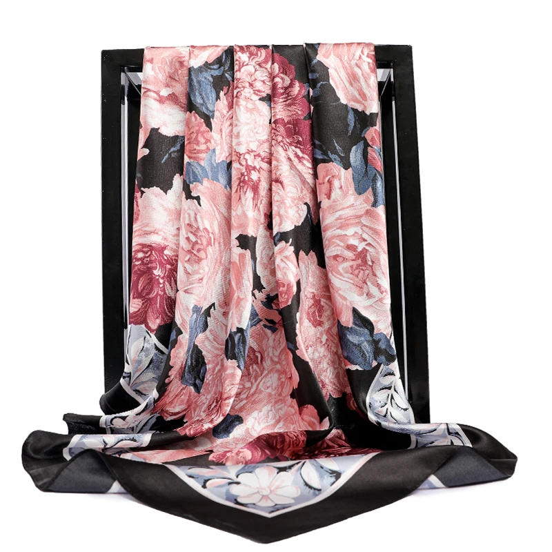 Платок женский атласный, 90x90 см, с цветочным принтом, квадратный,...
