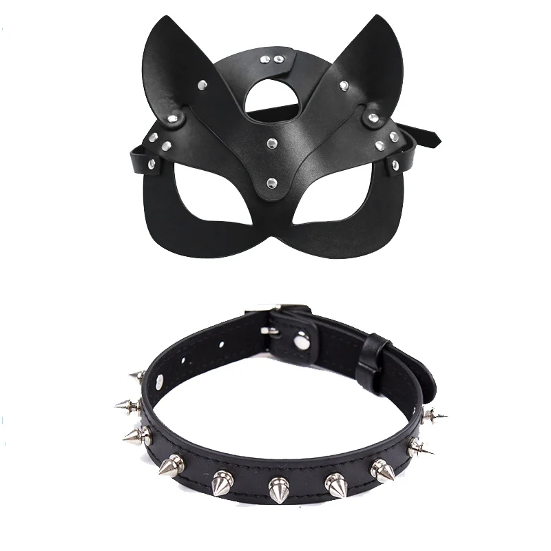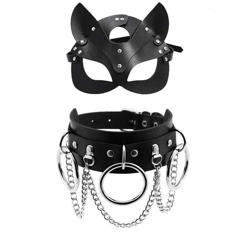 Секс-игрушки кожаная маска для женщин Косплей кошка БДСМ фетиш Хэллоуин маскарадные черные маски с сексуальным ожерельем эротические аксессуары