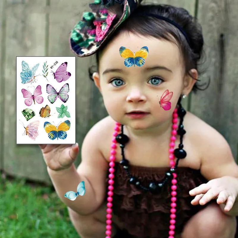 Тату-наклейки с бабочками для детей, временные искусственные татуировки, наклейки на лицо, руки, ножки для детей, боди-арт для девочек