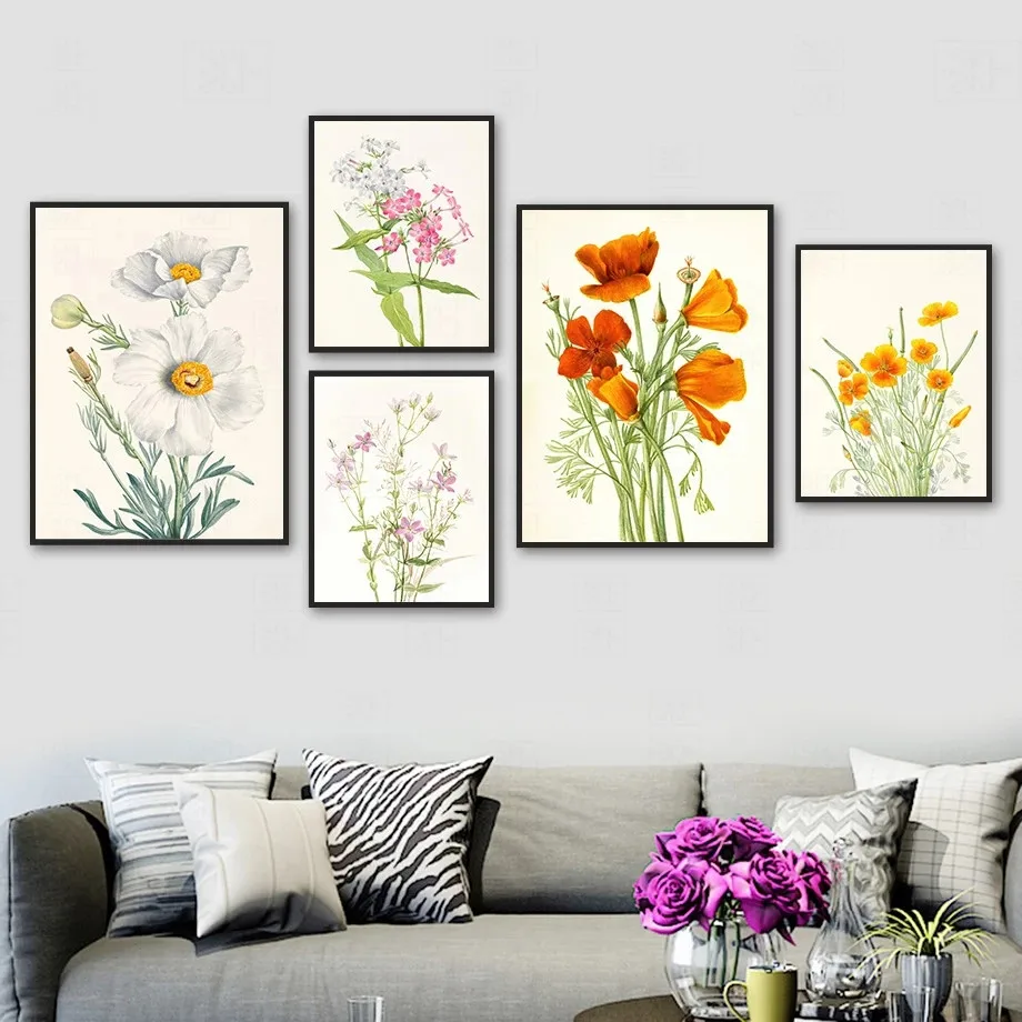Картина на холсте Мак фиолетовый нарфил акварель цветок настенное искусство скандинавские постеры для гостиной украшение настенные картины без рамки