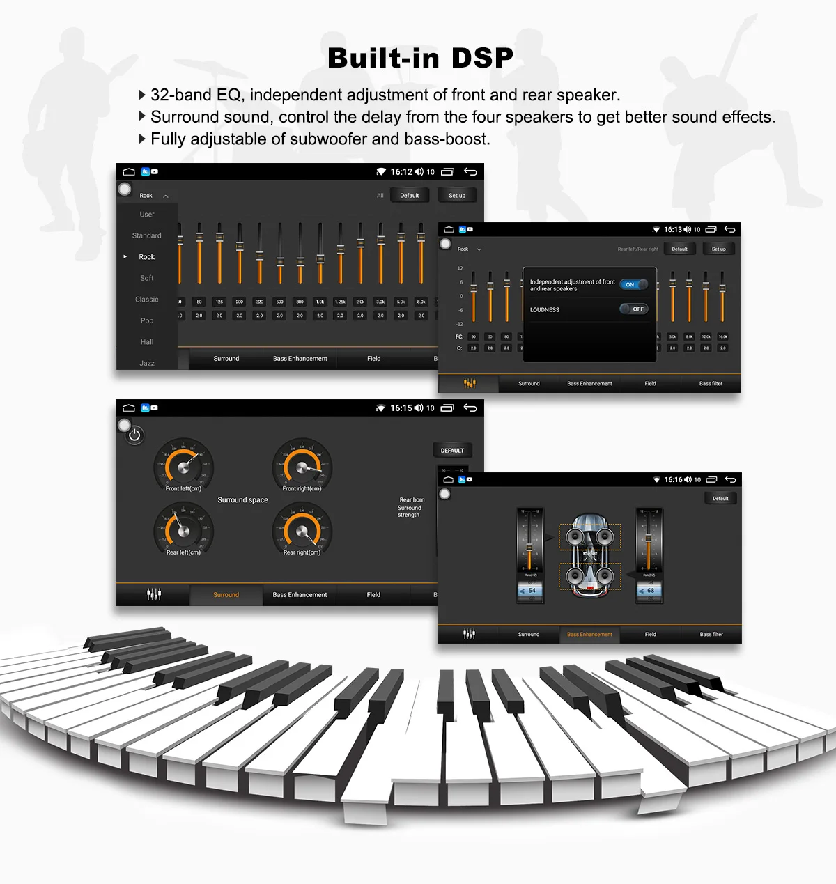 * Встроенный DSP с 32-полосным эквалайзером.