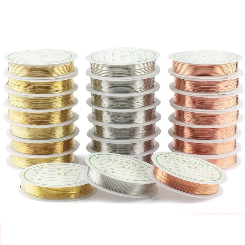 Медная проволока для браслетов и ожерелий, серебрянаяЗолотаяРозоваяЗолотая проволока для самостоятельного изготовления бисера, цветная проволока для бисероплетения, шнур для ювелирных изделий, нить для рукоделия, 0,2-1 мм