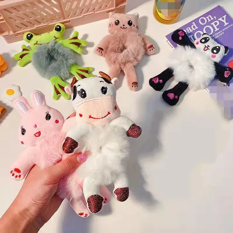 Резинка для волос эластичная женская, милая резинка для волос с мультяшным плюшевым рисунком лягушки, кролика, кошки, набивное животное, резинка для волос для девушек