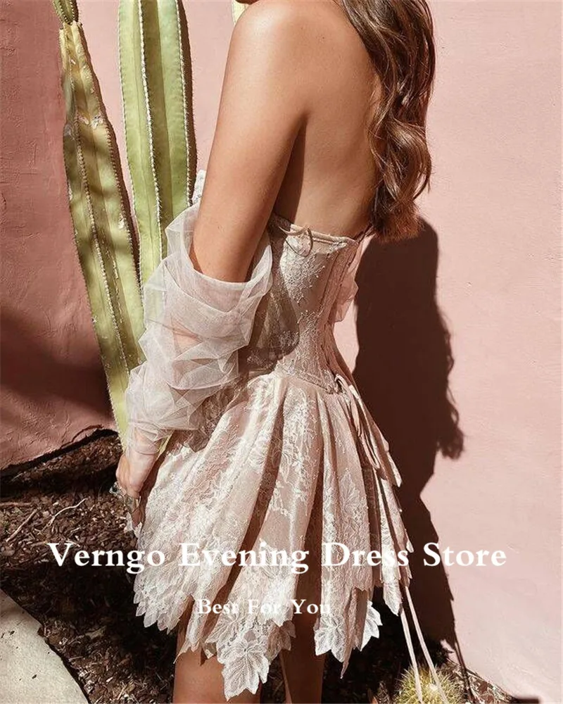 Платье на выпускной Verngo с открытыми плечами, блестящее, короткое, с пышными рукавами, Возлюбленное, выше колена, вечерние платья