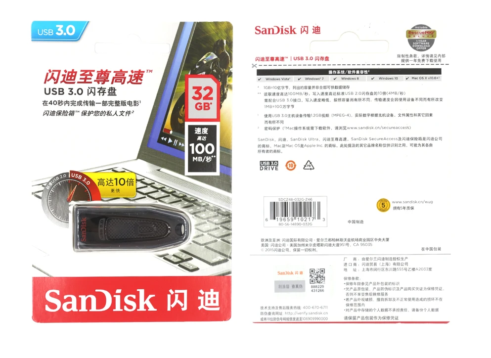 Совместим с портами USB 3,0 и 2.0 Флеш-накопитель USB 3,0 SanDisk Ultra обратно совместим с USB 2,0, поэтому вы можете подключить его к любому порту USB 2,0 или 3,0.