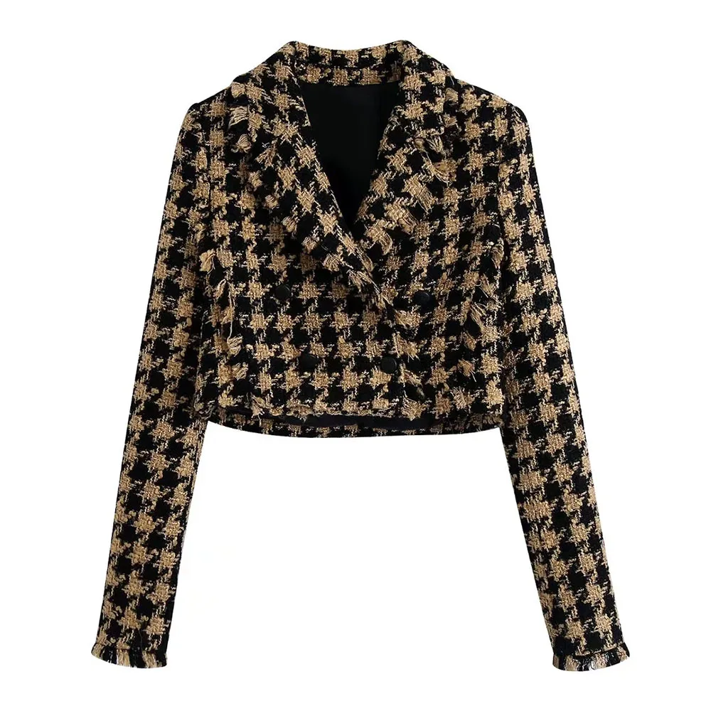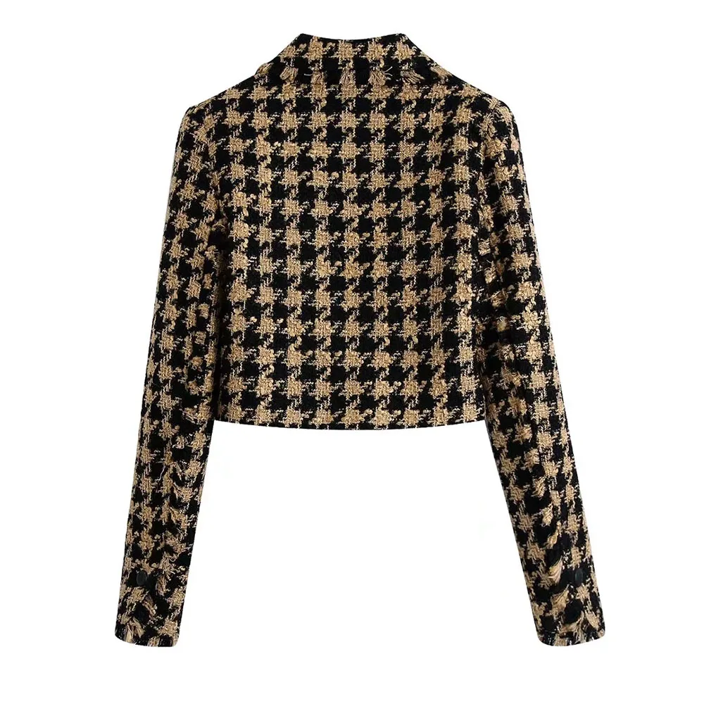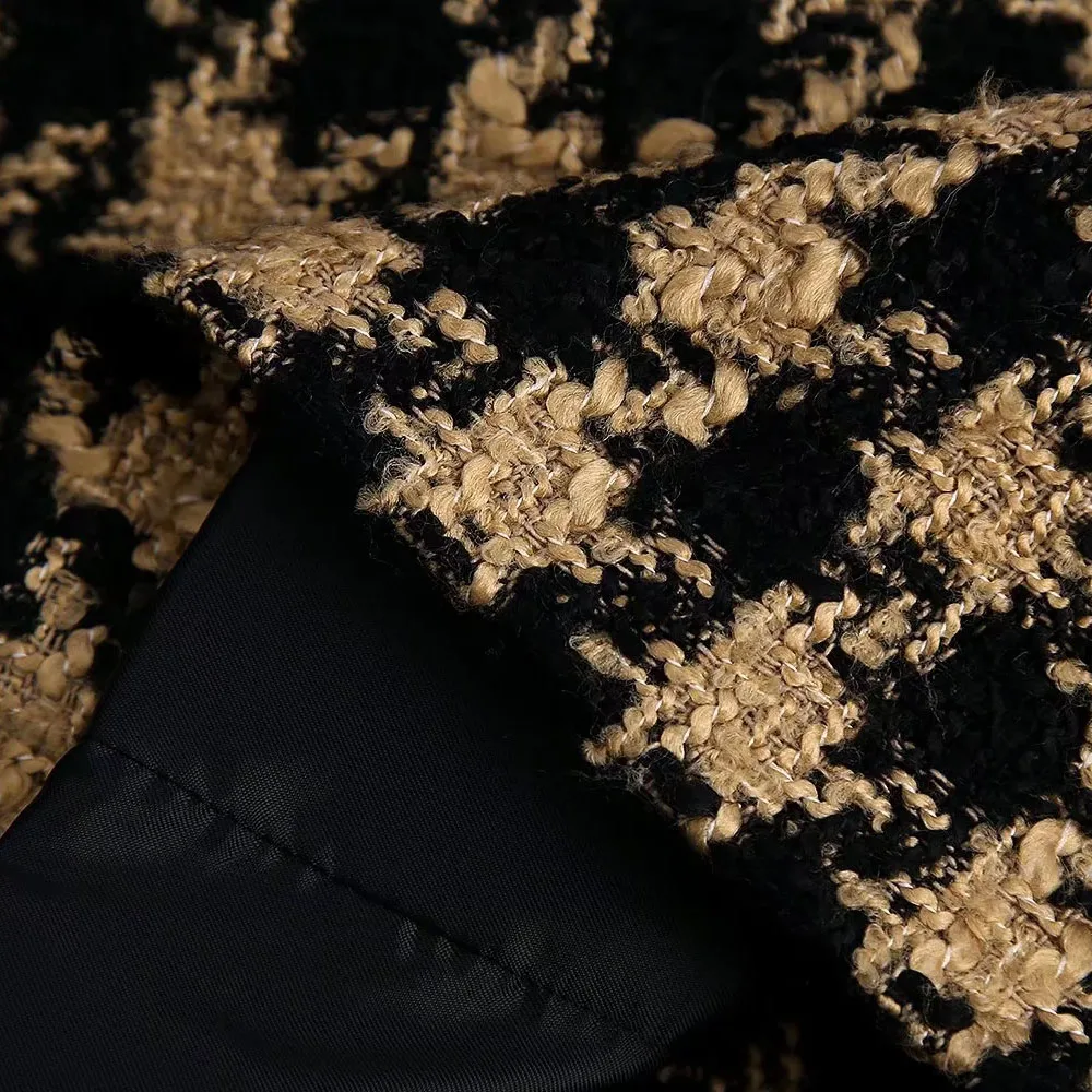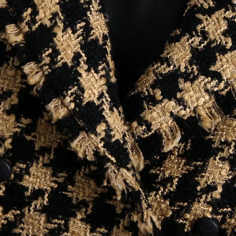 Женский твидовый комплект из двух предметов XEASY, винтажный офисный короткий Блейзер с рисунком гусиные лапки, повседневная облегающая юбка с высокой талией, 2021
