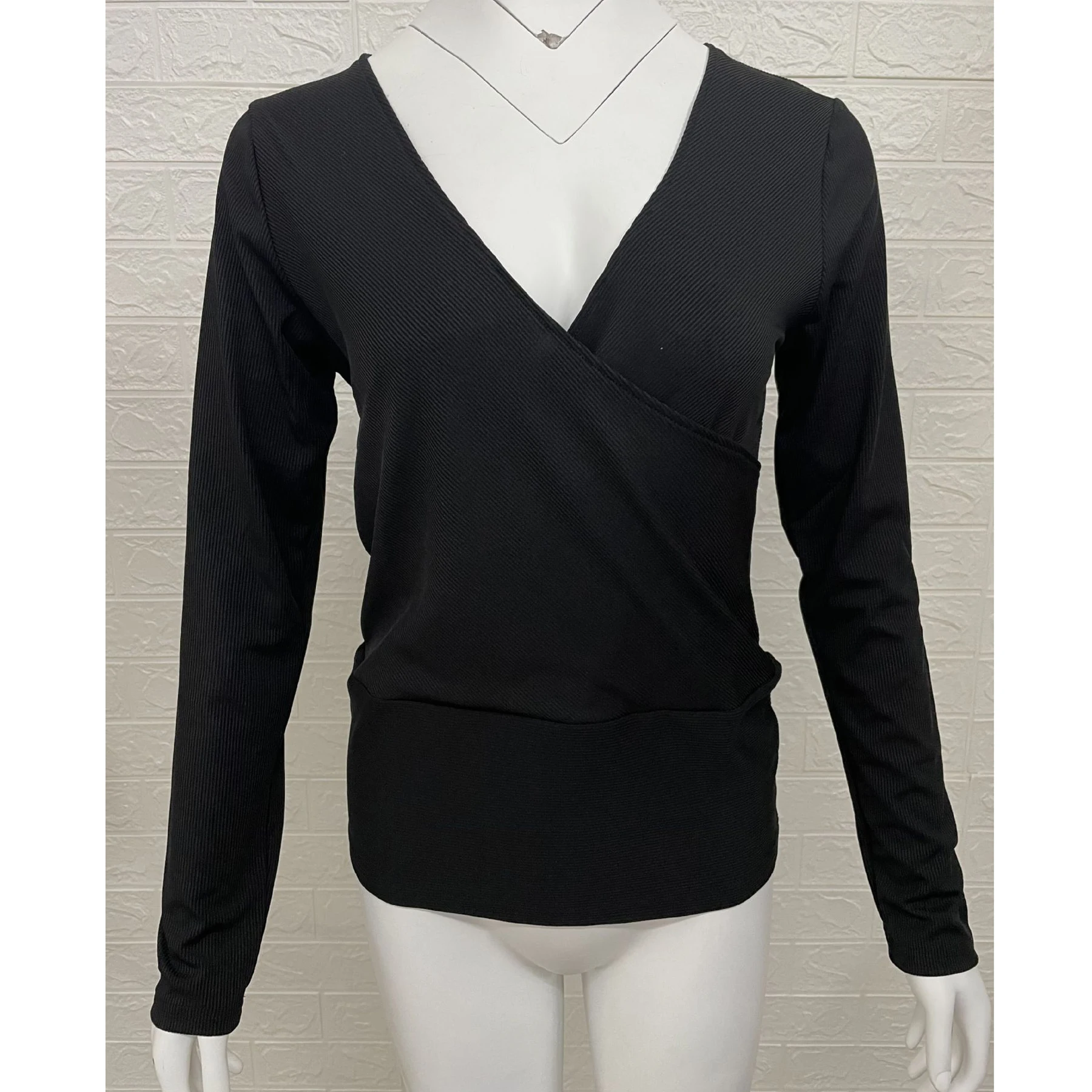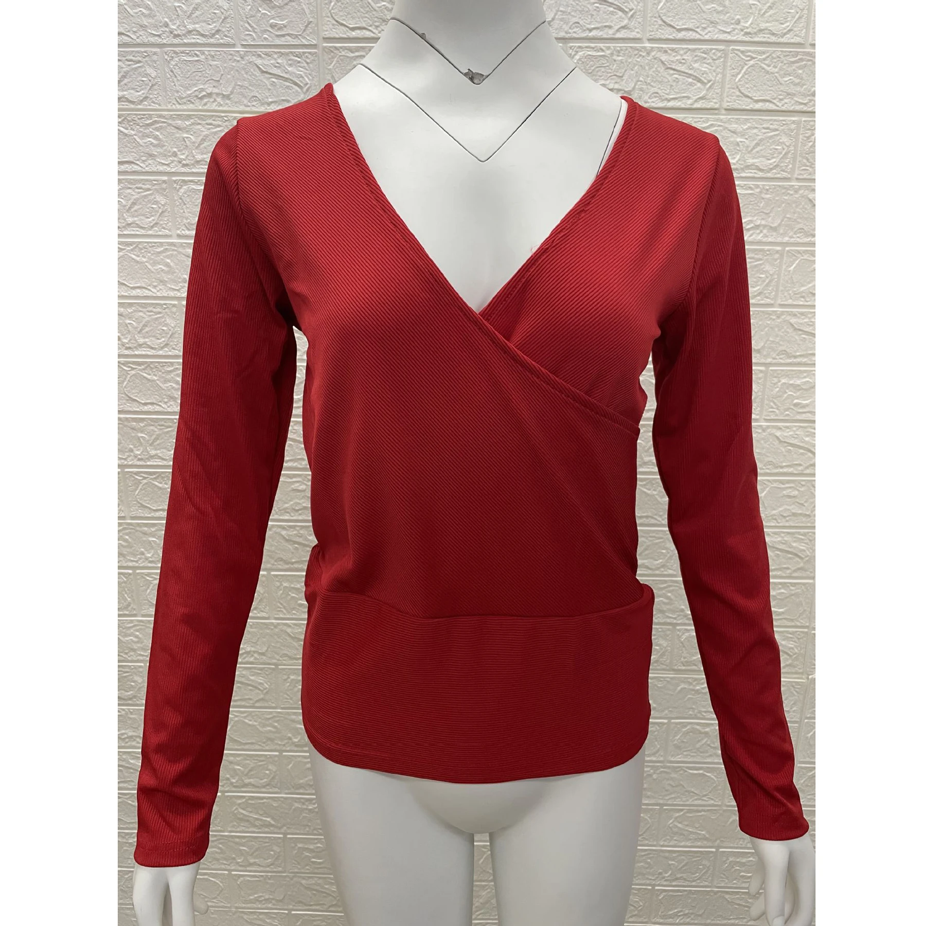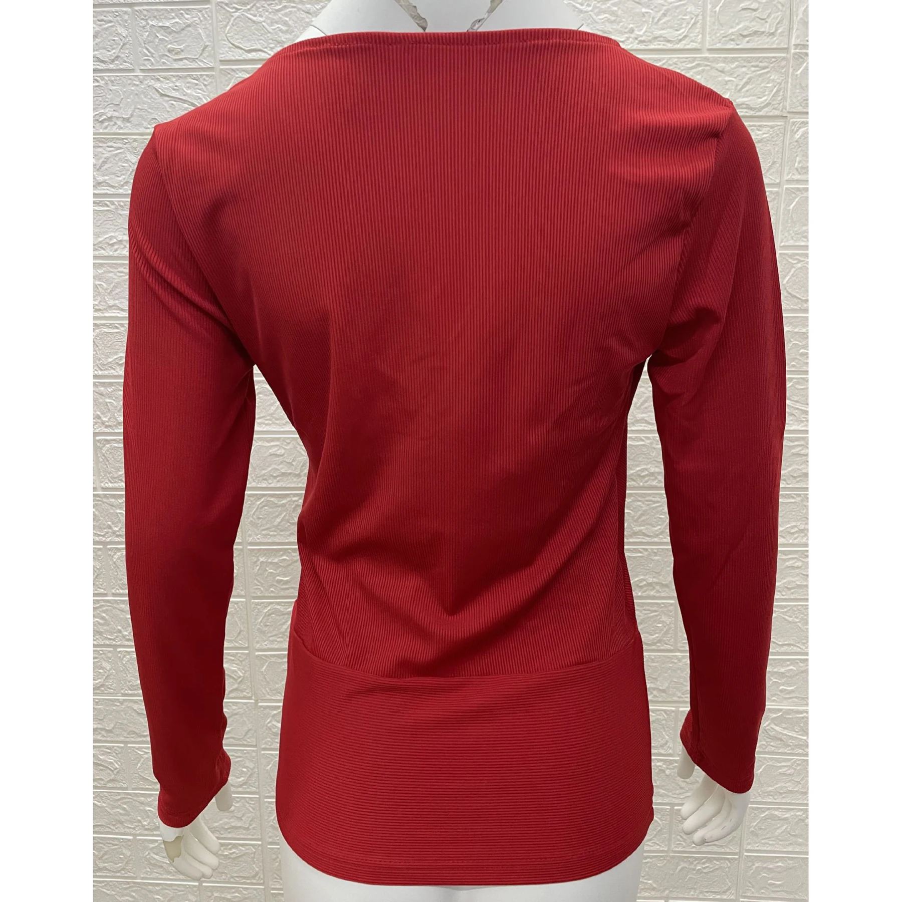 Женский базовый трикотажный топ с длинным рукавом и V-образным вырезом, футболка, сексуальные женские облегающие черные и красные Топы AM3466