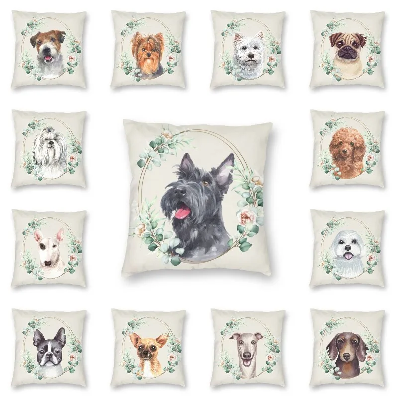 Модная Наволочка на подушку с изображением таксы шотландской терьера, украшение для дивана, Наволочка на квадратную подушку с принтом грейхи, пуделя, бульдога, домашних животных