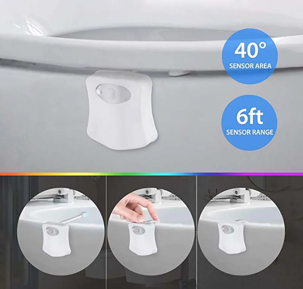 1. Система автоматического зондирования: она включится при закрытии, автоматически выключается при выезде2. 8-Цвет светильник излучения: 8-Цвет светильник, в свою очередь, каждый Цвет в течение 15 секунд в случайном порядке, 120 секунд в целом для круга, вы также можете зафиксировать один Цвет вы желаете3. Энергосбережение и полезность: это позволяет вашей ванной легко получить доступ через устройство автоматического обнаружения, умный и внимательный4. Мягкая ПВХ шея может быть гибко согнута для большего удобства5. Санитарный дизайн: легко чистить6. Гладкий и стильный дизайн, нежный орнамент. Очень умное устройство для всех вас