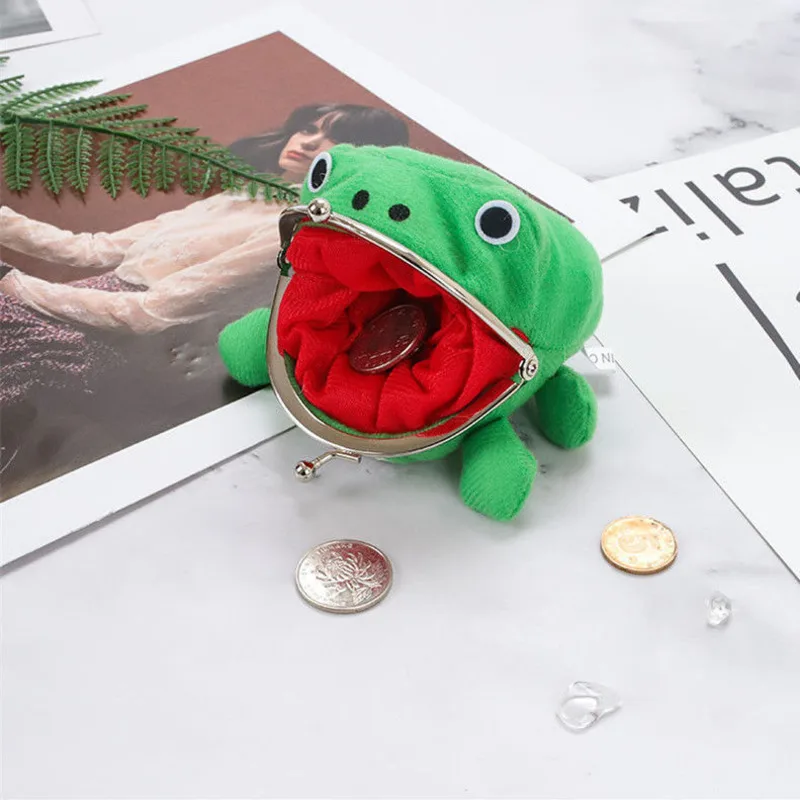 Мужской и Женский кошелек с рисунком лягушки, женский маленький кошелек, милая зеленая лягушка, плюшевая Сумочка для монет, большой рот, лягушка, кошелек для монет