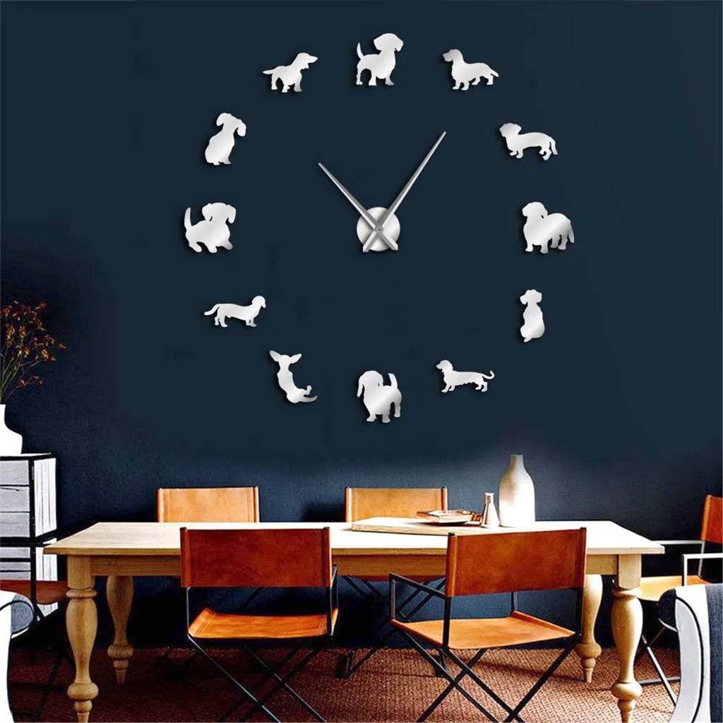 DIY такса настенное искусство Винер Собака Щенок безрамные гигантские часы с зеркальным эффектом
