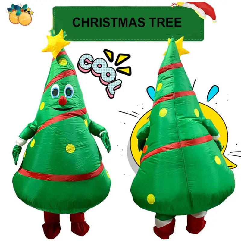Рождественский костюм куклы из Мультфильма надувной Санта-Клаус наряды Забавный надувной Рождественский костюм с деревом одежда